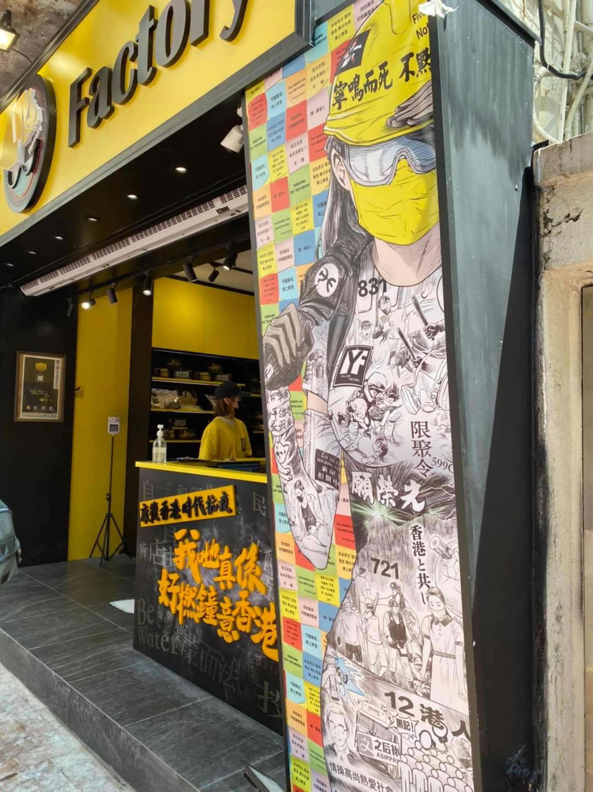 大公文匯報道斥「黃廠」門店裝潢極具「抗爭者」色彩,主要以各類「暴徒裝飾的插畫」為主。(黃廠facebook)* l- D# G' C; v