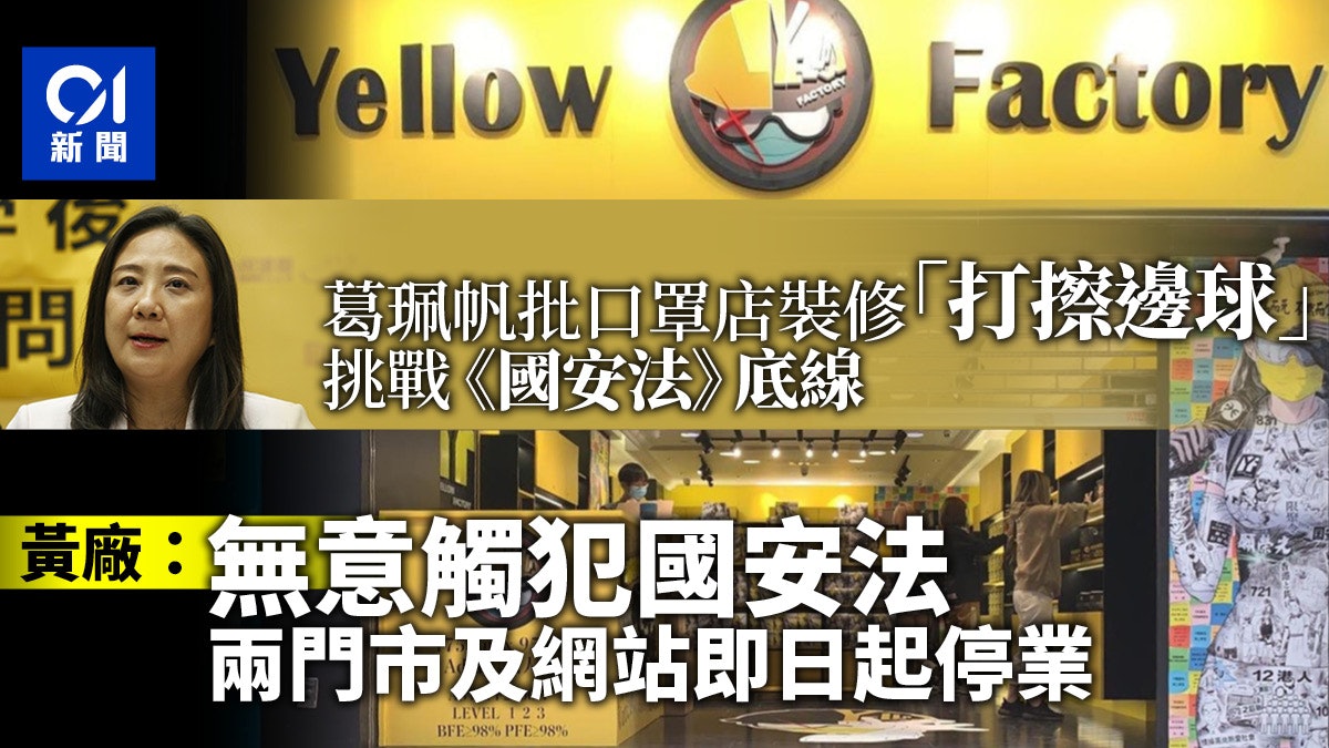 《大公報》、《文匯報》前日(16日)報道,批評本地口罩生產商「黃廠」Yellow Factory 企圖延續「抗爭思想」,將「魔爪」伸向各行各業甚至「荼毒」青少年。報道引述民建聯立法會議員葛珮帆指,店鋪裝修帶有明顯政治傾向,企圖「打擦邊球」,「肆意挑戰香港《國安法》的底線」。