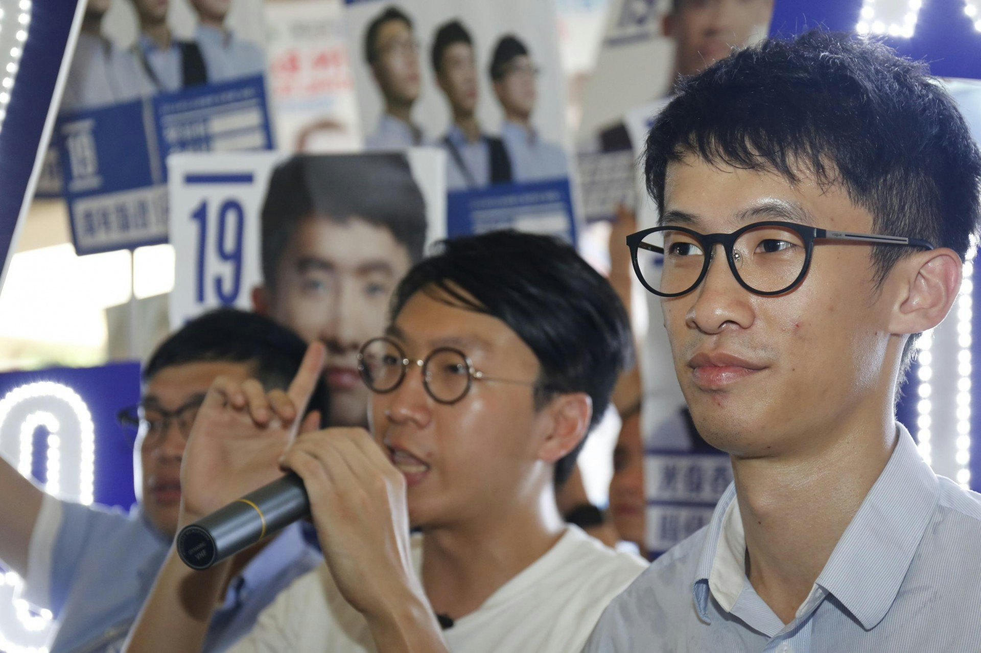 青年新政的梁頌恆(右)及游蕙禎(中)後來被裁定非法集結罪成。(資料圖片/張浩維攝)' r% D9 m* e- L6 N, z- k/ S7 H