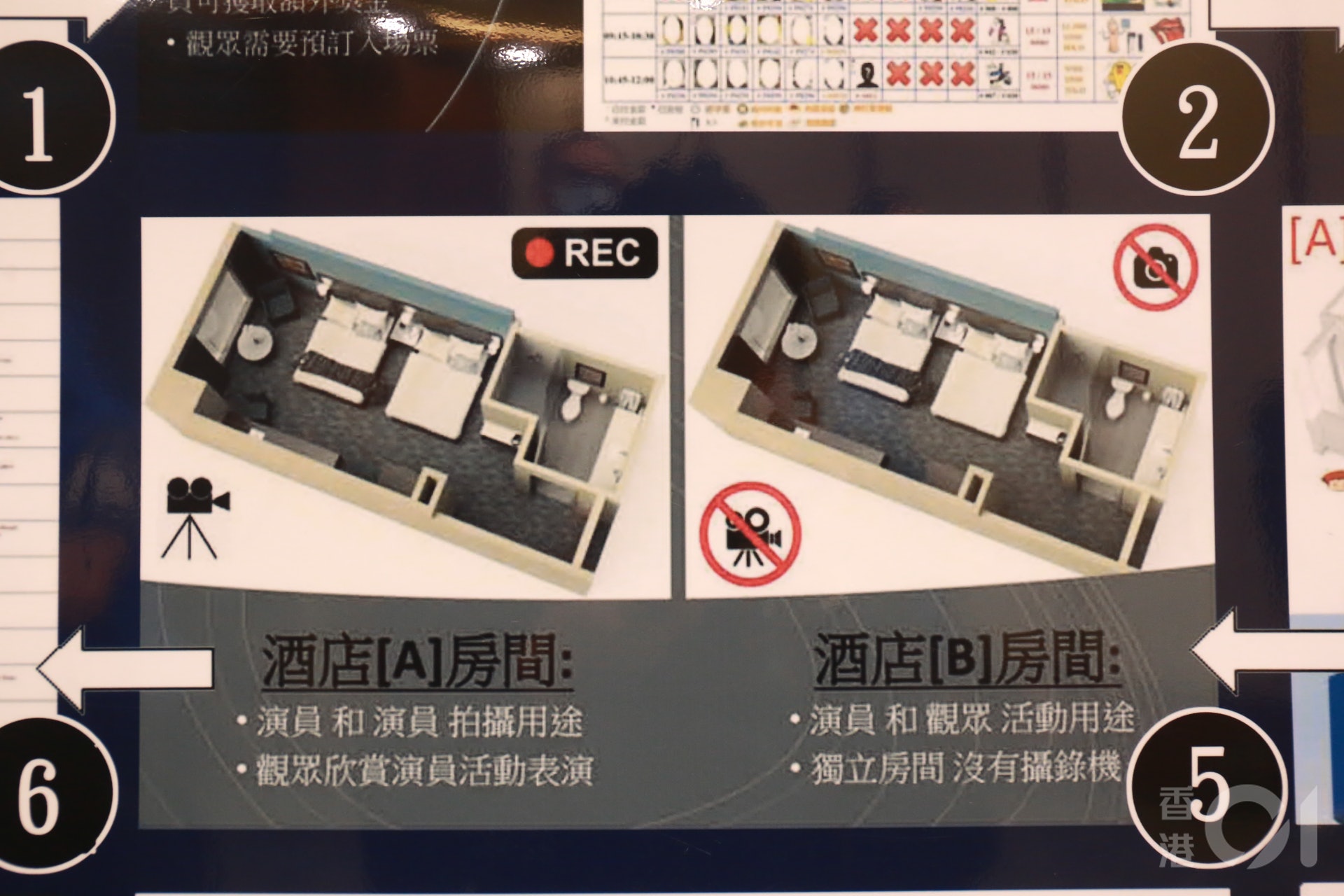6 ~$ j, @& a% p+ Q8 X& B2 |5 @+ tos.tvboxnow.com「A/B房」的人數,A房最多有4名演員及2名觀眾,過程會被拍攝;「B房」最多有一名演員及一名觀眾。(林振華攝)