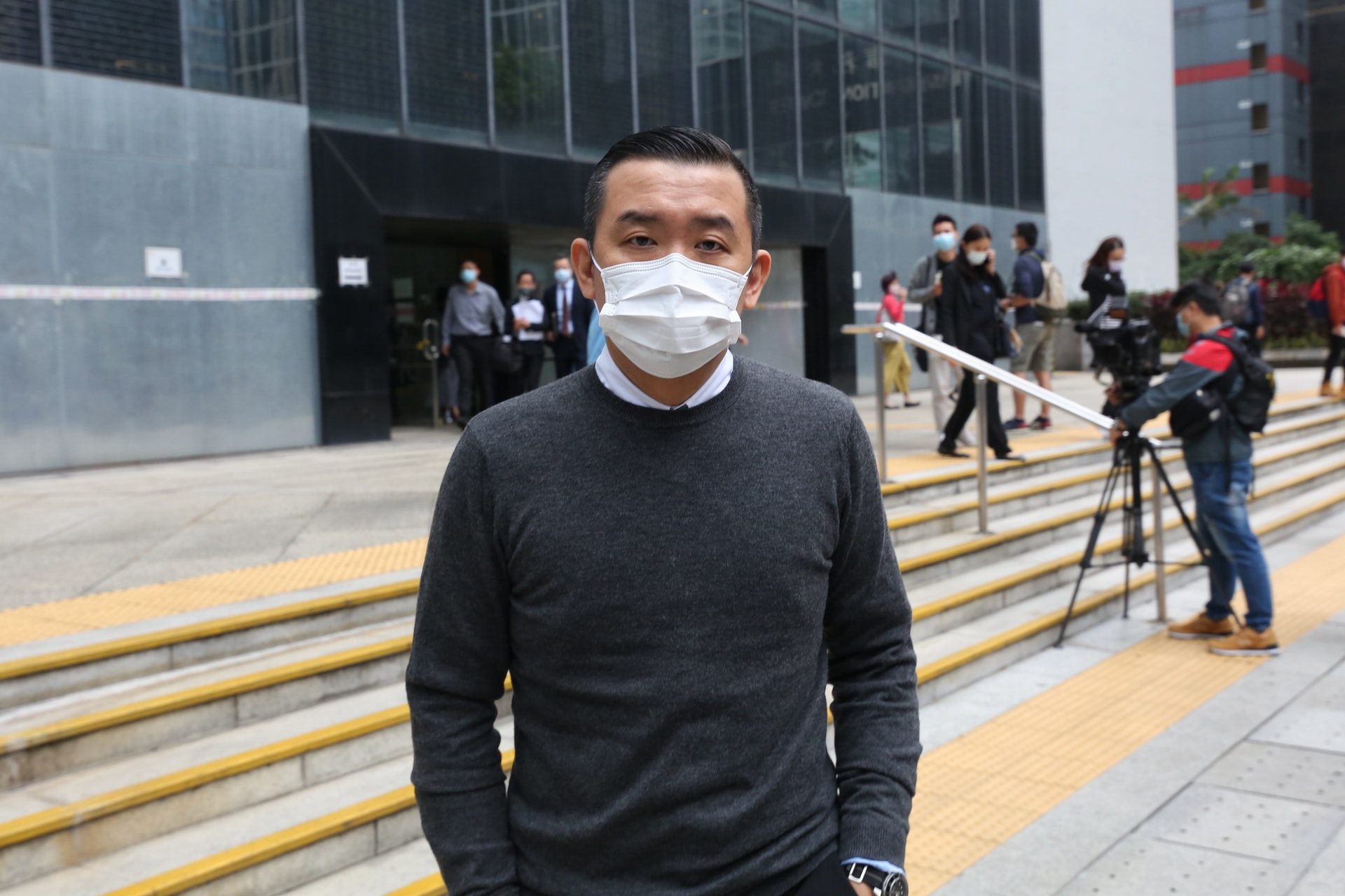 方力申與杜德智齊齊到場為雷頌德撐場。(黃國立攝)5 n. y# q# m) d0 I+ `# R0 X