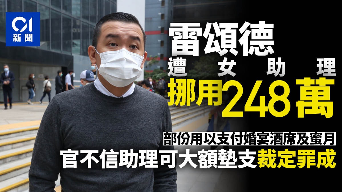 音樂創作人雷頌德的女助理,涉以工作之便,挪用雷逾248萬元,部份更用以支付婚宴酒席費用,及蜜月開支,更在審訊時辯稱,涉案轉帳屬雷向她歸還早前她墊支的費用。法官李慶年指,當時女助理月薪只有1.3萬元,積蓄只有數萬元,按她所說,單在2012年上半年,她每月便要為公司墊支逾9萬元,不可能為雷作出有關墊支,認為她不誠實挪用公款,裁定她盜竊、使用虛假文書副本共7罪罪成。案件押後至周四繼續作求情及判刑。3 d" l- }" E9 j8 M2 M6 }# t$ t
