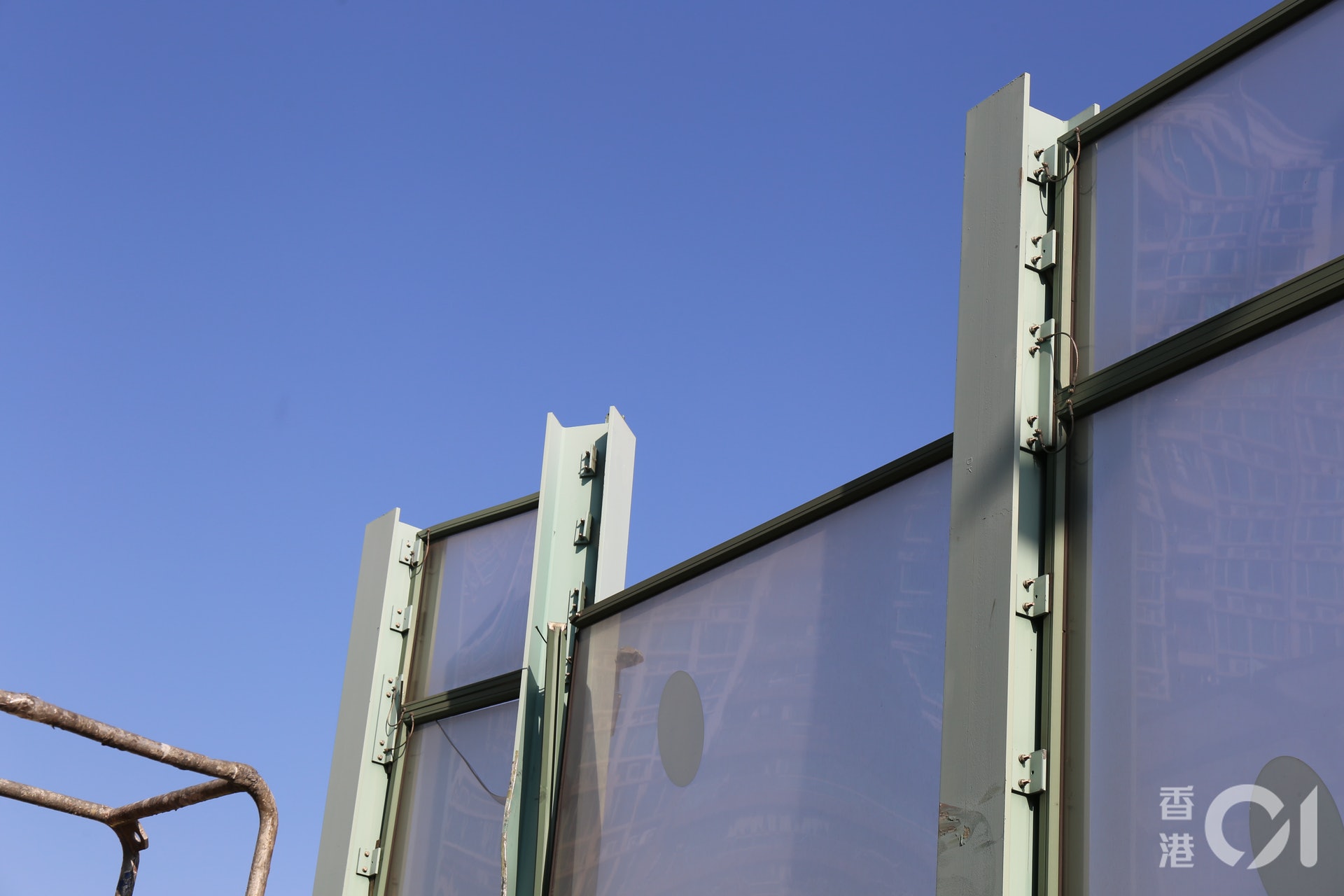一架貨櫃車沿元朗公路往屯門方向行駛,途近洪水橋時突然失控撞向隔音屏圍板,車頭嚴重毀爛。(陳諾希攝)os.tvboxnow.com! S/ T& P4 f2 b0 p+ I