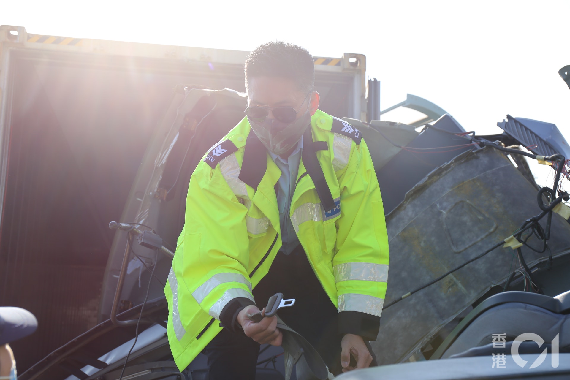 警方調查是否有人沒有佩戴安全帶。(陳諾希攝)
