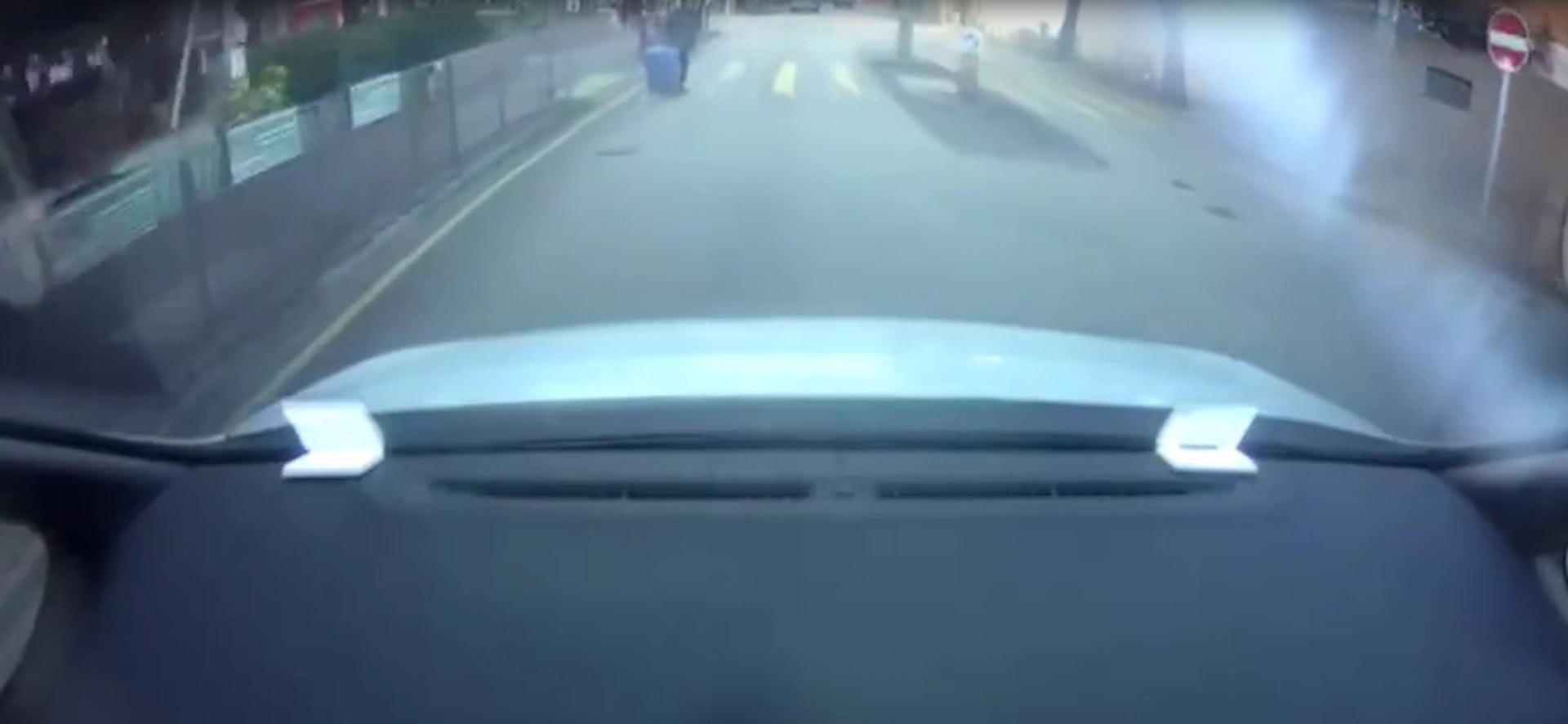 此時,一名身穿白色上衣的金髮本地男,由巴士站旁的行人路衝出,他直撞私家車的車頭冚,私家車見狀立即停車。(網上影片截圖)os.tvboxnow.com5 z9 K, j2 [6 K1 {' ^