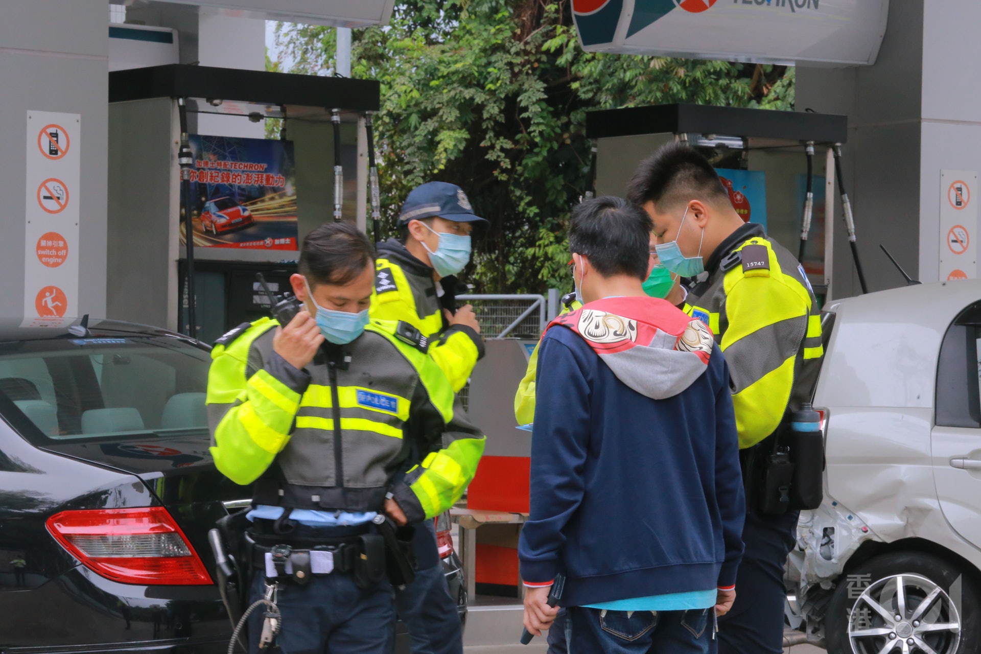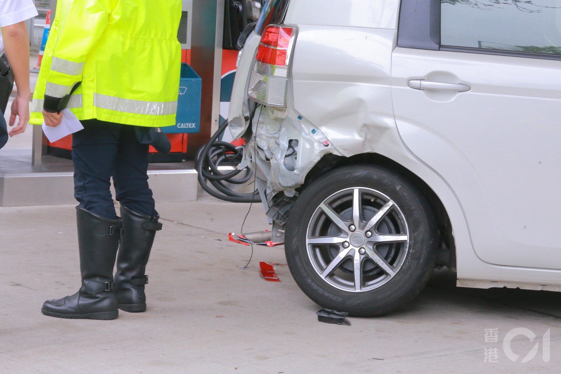 私家車失控衝入油站。