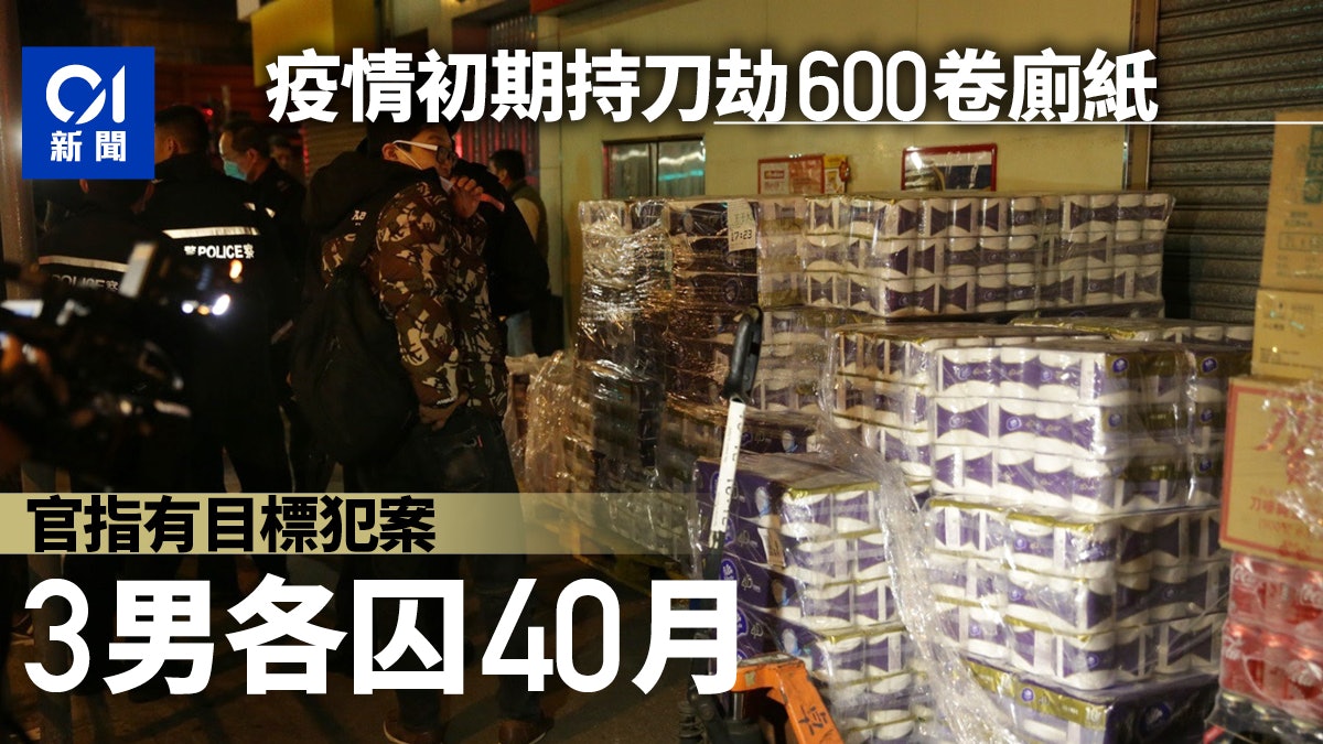 ) h: C" {/ G7 l' }TVBNOW 含有熱門話題,最新最快電視,軟體,遊戲,電影,動漫及日常生活及興趣交流等資訊。去年疫情爆發不久,市民爭相搶購日用品及防疫物品等,超市貨架上的廁紙亦被掃光。3名男子疑看准機會,清晨在超市門外搶劫600卷廁紙,事件更一度成國際新聞。惟3男不久後即被捕,他們今(11日)在區域法院承認搶劫罪。法官指被告案發前有簡單步署,當時香港正受疫情影響,市民到處搶購廁紙和日用品,案件嚴重性不會因為涉案貨品金額低而減輕,判3人入獄40月。tvb now,tvbnow,bttvb9 t4 }( J' @$ N6 x/ n V& {