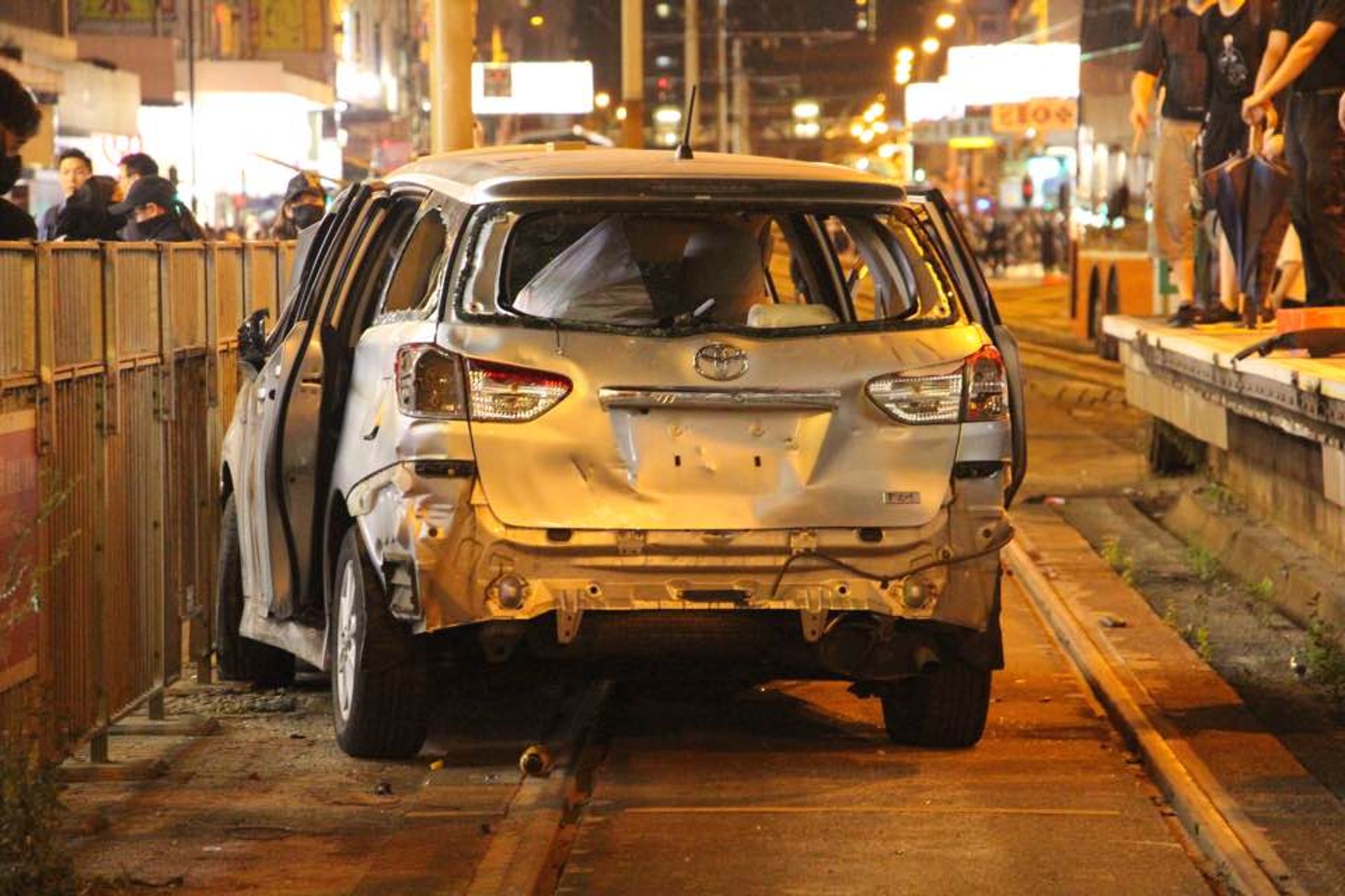 現場消息指:開槍警員所駕駛私家車玻璃窗破碎,車內遺有磚頭,車頭亦被人塗鴉,全車損毀不堪。警員事後曾在火堆灰燼尋找彈匣,但未有發現。