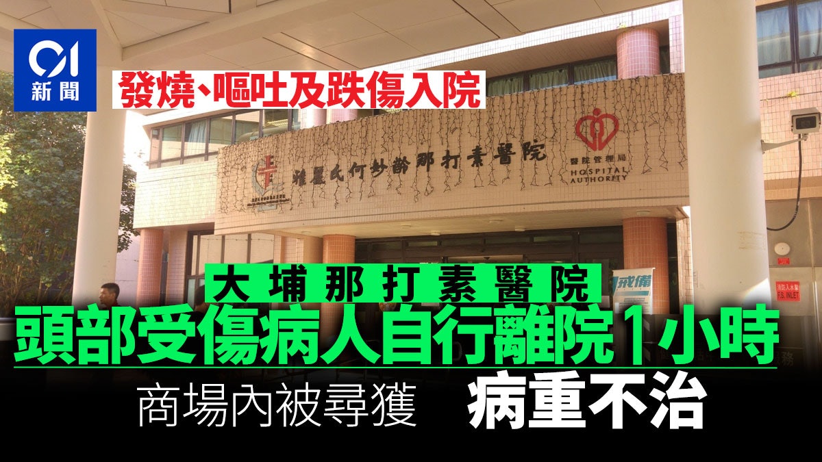 大埔那打素醫院上周六(24日)早上,有頭部受傷病人自行離院,當局報警後在區內一間商場發現其蹤跡,約一個小時後將其送返醫院,惟他當時情況嚴重,搶救後才恢復心跳和血壓,延至翌日凌晨不治。