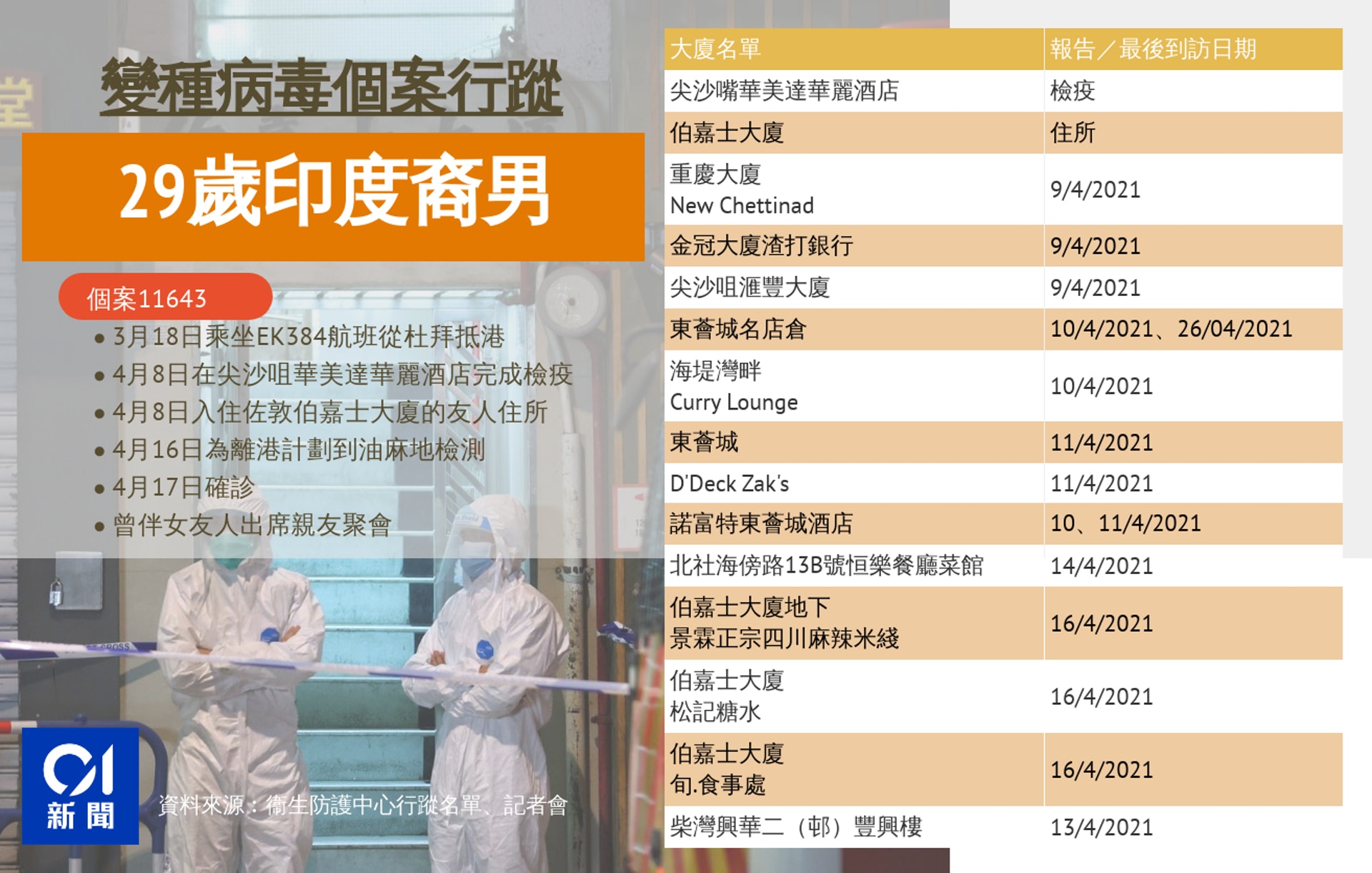 k! r: B6 I: O3 c/ _* F8 U# G, d" b# N& G公仔箱論壇28歲菲律賓抵港男患者(#11544)於今年3月25日從菲律賓抵港,由當日至4月6日在尖沙咀華美達酒店接受檢疫。在4月5日,即檢疫期間的第12天的檢測為陽性。而印裔男子於3月19日從杜拜抵港,在尖沙咀華美達酒店接受檢疫至4月8日。二人檢疫期重疊12日,所住的房間亦相鄰。