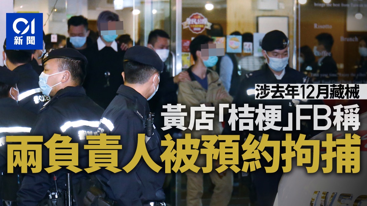 旺角砵蘭街黃店食肆「桔梗」去年12月被警方突擊巡查,在店內發現伸縮棍、頭盔等物品,2名男負責人涉嫌「管有違禁武器」及「藏有工具可作非法用途」被捕及「踢保」。事隔5個月,「桔梗」fb專頁今(17)午表示,負責人收到警方電話預約,將會到旺角警署落案拘捕,強調沒有新證據證明警方檢取的物品屬於店舖負責人或店舖。「桔梗」總店職員指對fb專頁聲明沒有補充。