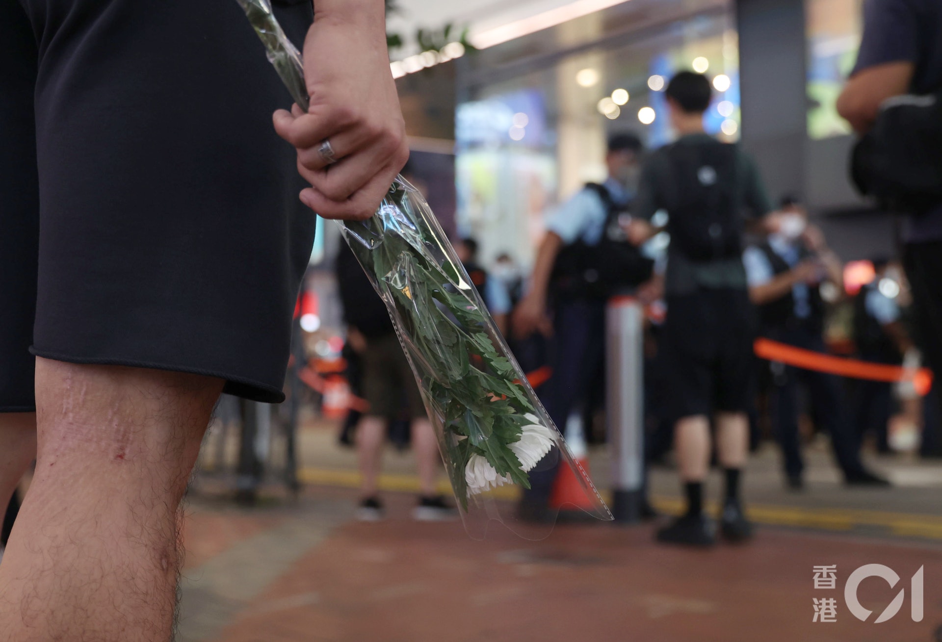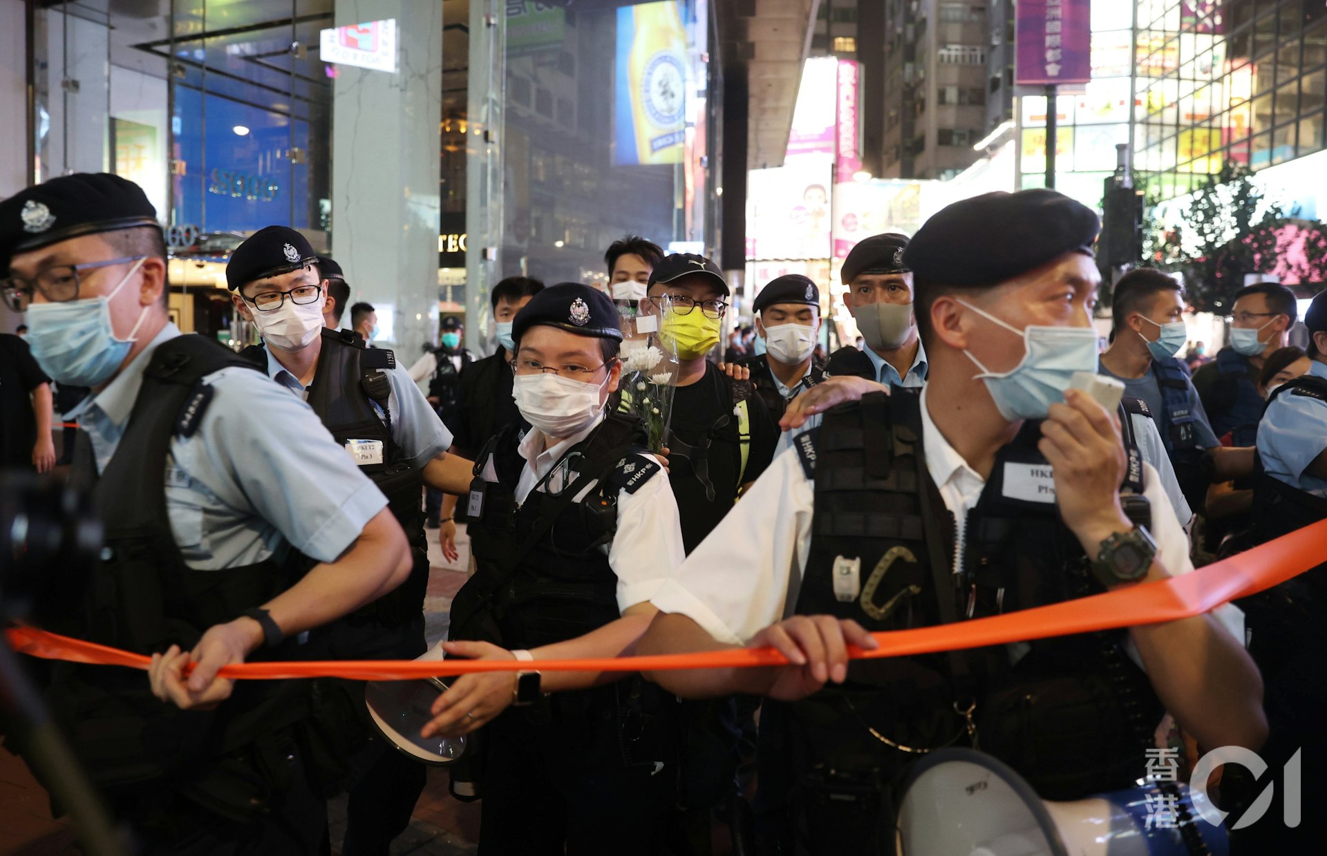 " d. R; X' L+ t V7月2日,有市民到銅鑼灣SOGO外獻花,悼念涉嫌刺警的梁健輝,有警員設封鎖區,搜查這些市民,部分人被指違反限聚令而被票控。(余俊亮攝)tvb now,tvbnow,bttvb2 S n6 b+ T( }: D, r