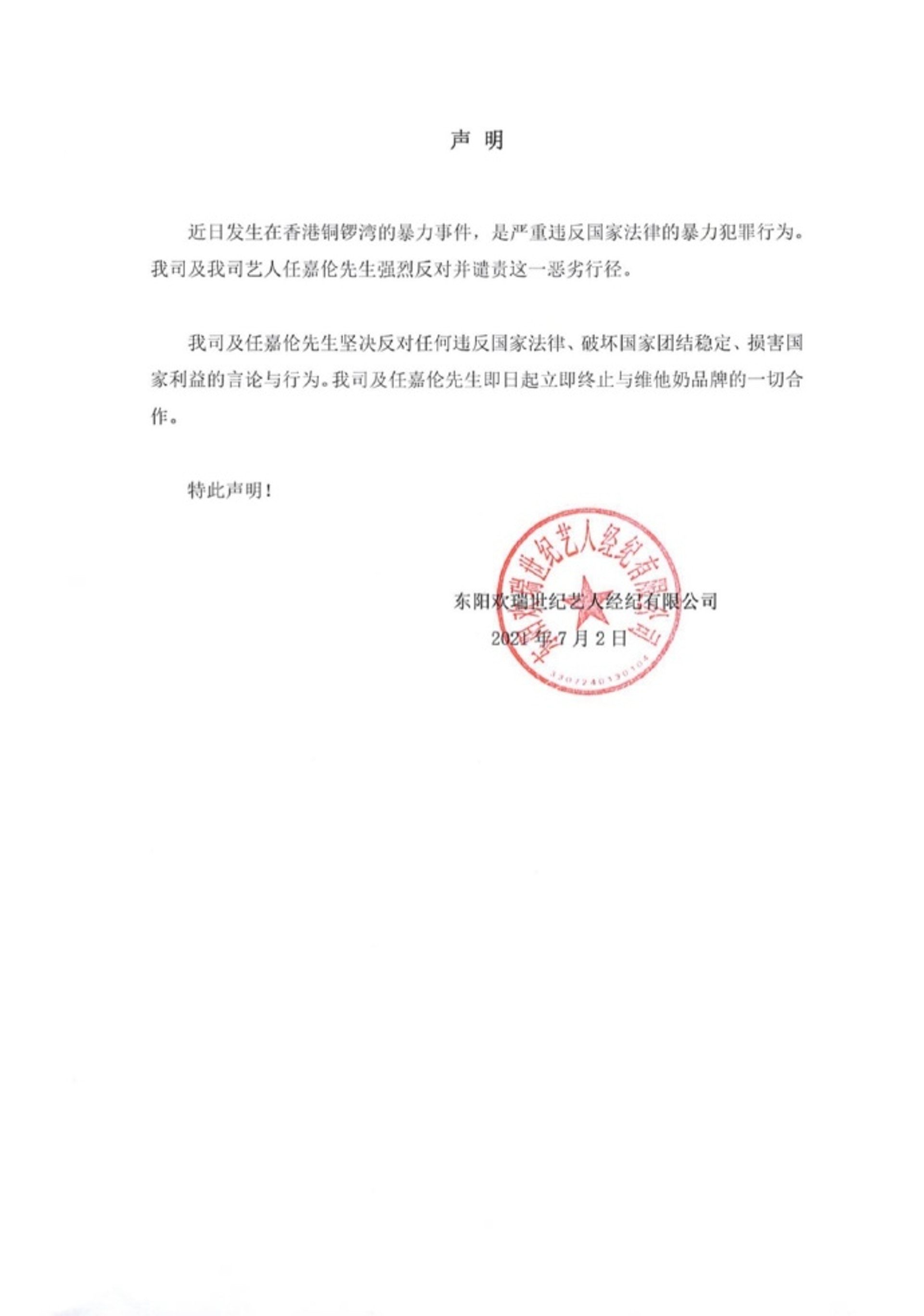 8 g' g; L! j3 t$ }$ l9 Y/ m [# PTVBNOW 含有熱門話題,最新最快電視,軟體,遊戲,電影,動漫及日常生活及興趣交流等資訊。維他奶內地代言人龔俊於昨晚10時半左右,在微博發聲明指,「堅決抵制一切形式的暴力、恐怖等極端行為」,宣布終止與維他奶品牌一切合作。而另一名代言人任嘉倫於晚上11時許亦發聲明,表示「堅決反對任何違反國家法律破壞國家團結穩定、損害國家利益的言論與行為」,即日起終止與品牌合作。