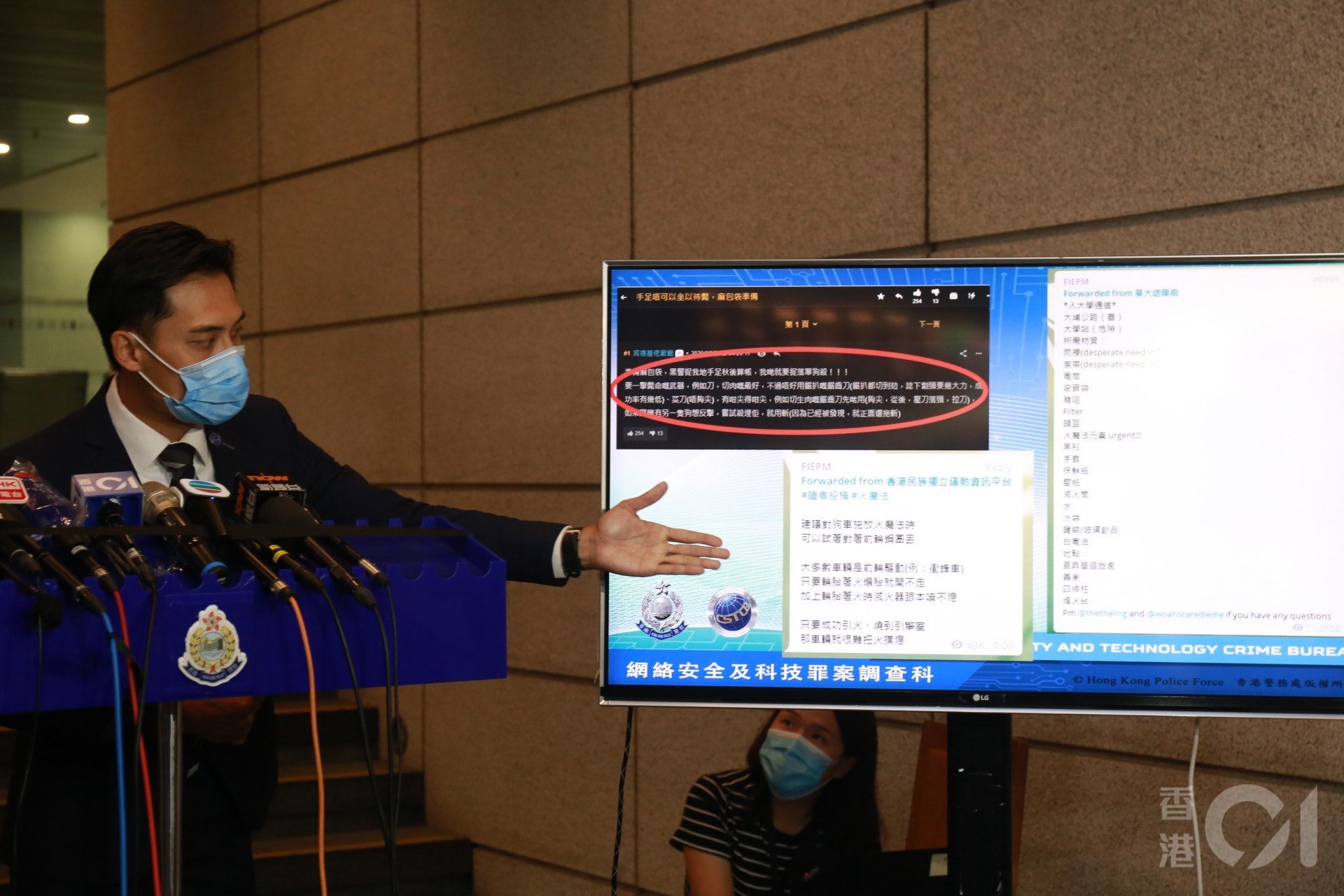 S! S1 {& t7 s- G警方指,有人在網上發文宣揚以致命方式攻擊及殺害警員;對警員起底;以文宣宣傳未經批准的集結。(資料圖片/林振華攝)