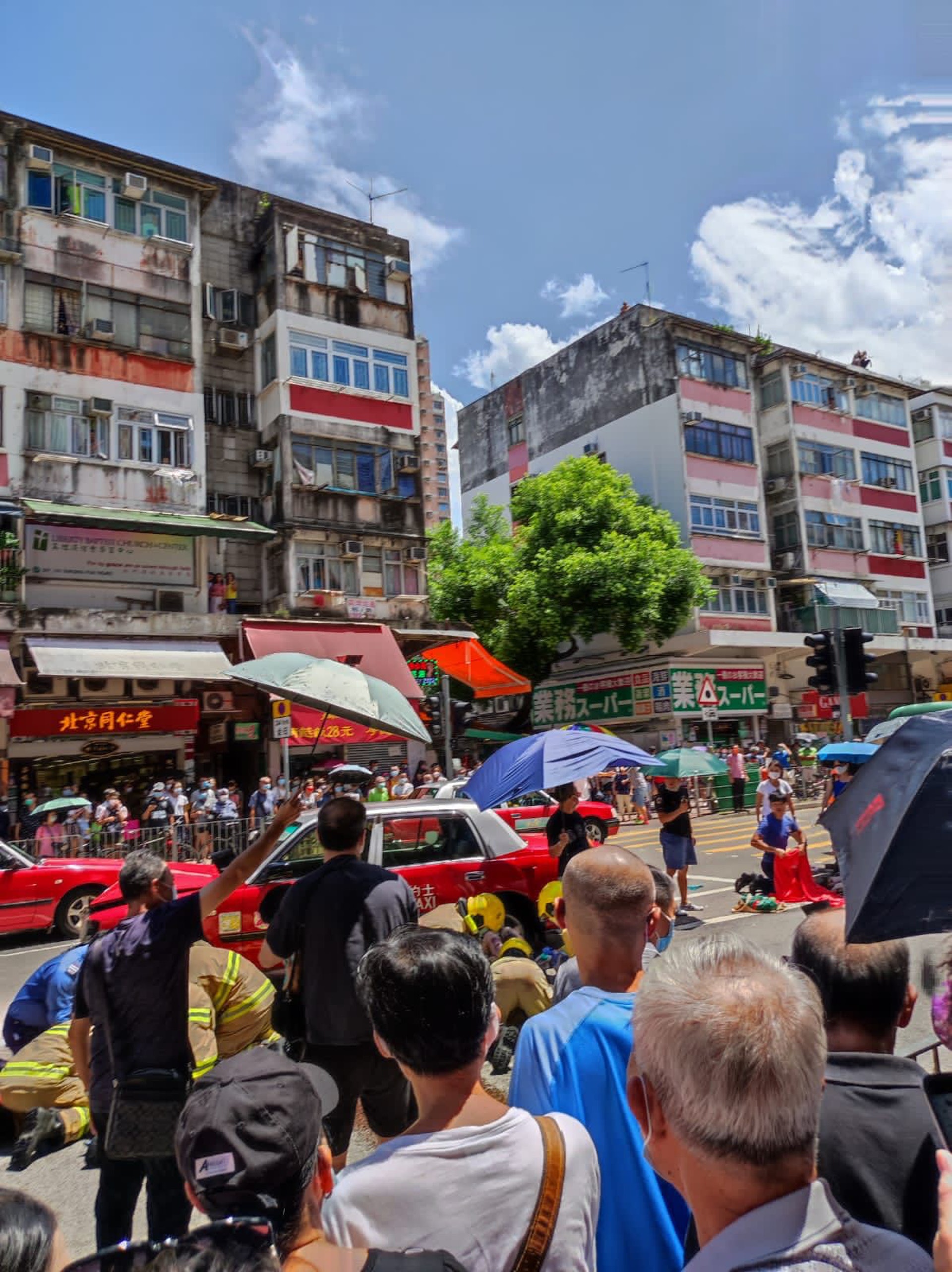 : b7 z2 b5 r+ Ftvb now,tvbnow,bttvb8月22日,大埔廣福道奪命車禍,的士突然失控剷上行人過路線安全島,釀成兩死八傷。(讀者提供)