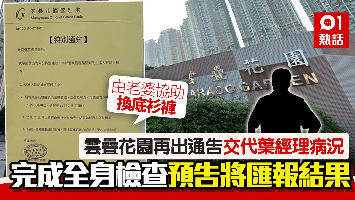 雲疊花園管理處於11月1日再發出特別通告,交代了葉經理的最新病況。