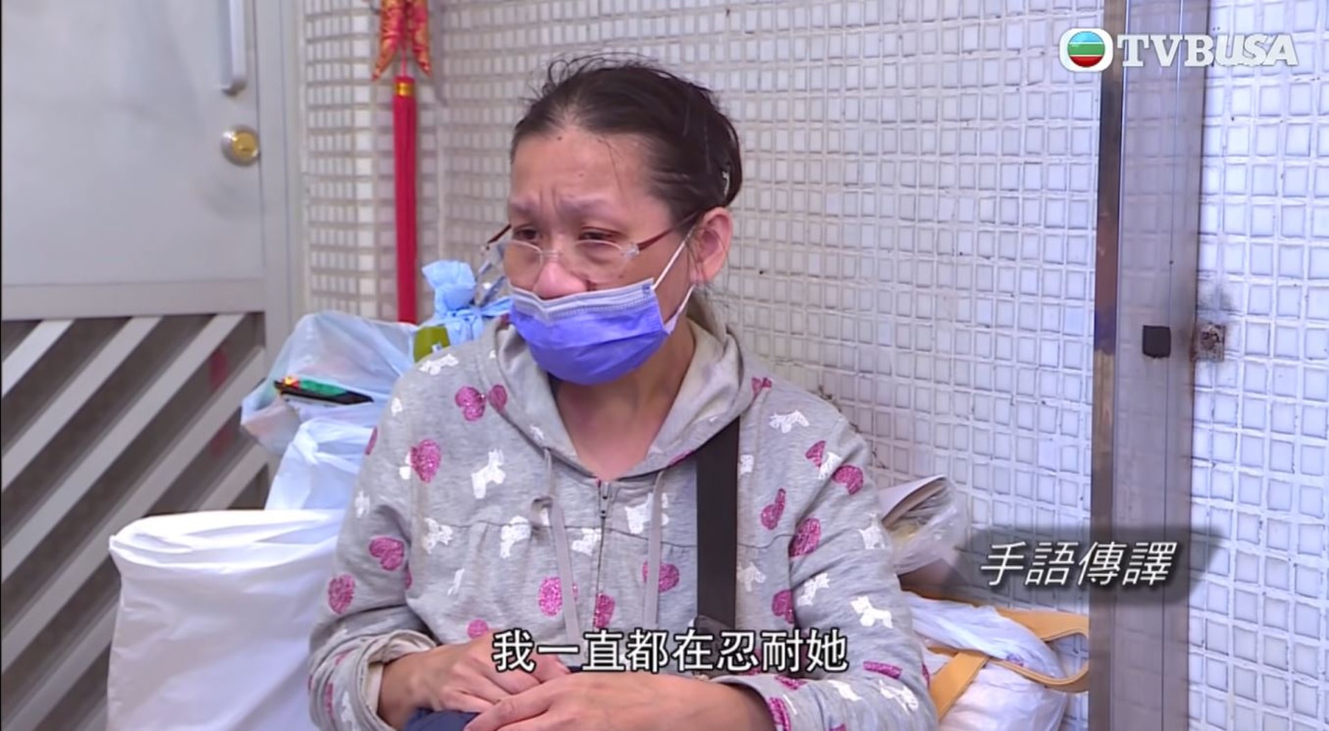 50多歲聾啞女子美華的九旬父親生前立遺囑,將單位贈予大廈女保安,美華最後被迫遷,無家可歸。(《東張西望》截圖)