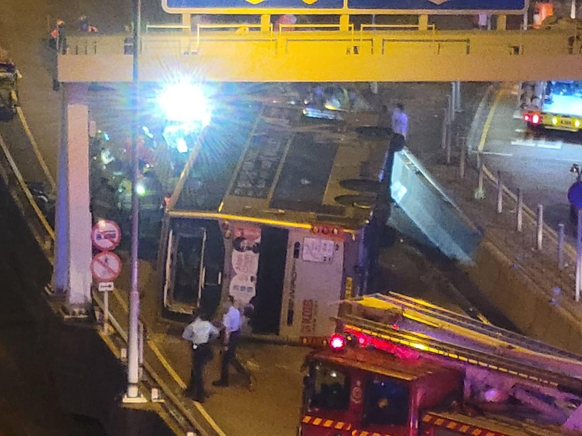 : q; d7 ~! g$ l- P4 Eos.tvboxnow.com大圍翻九巴│88K線巴士疑行錯路急扭軚 撞壆翻側致1死11傷~