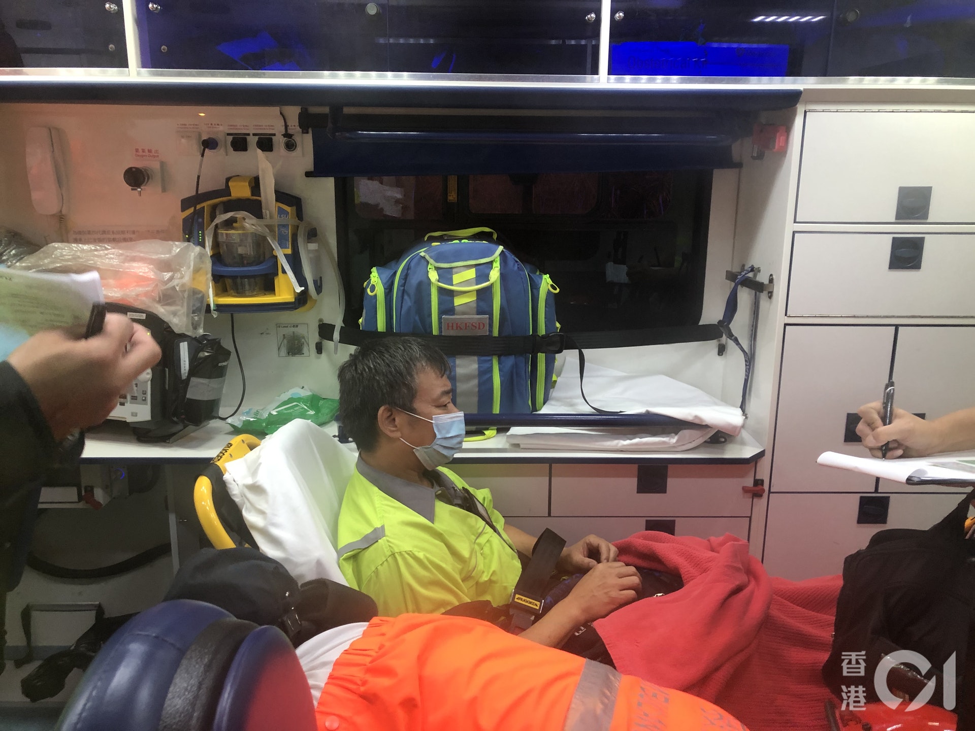 8 Q) D1 Q# i2 R: H# S巴士男司機被送上救護車。(張嘉豪攝)