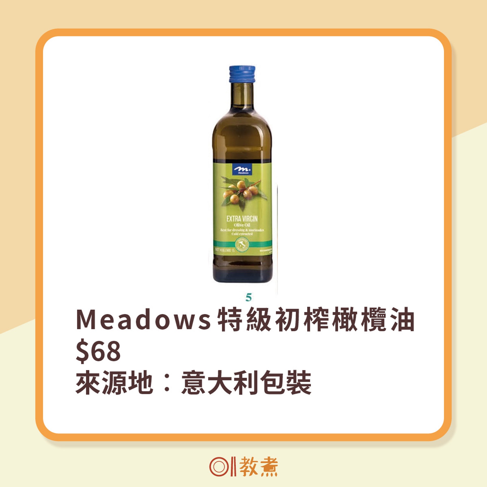 以下14款橄欖油煙點高於180℃可用於烹調炒餸︰