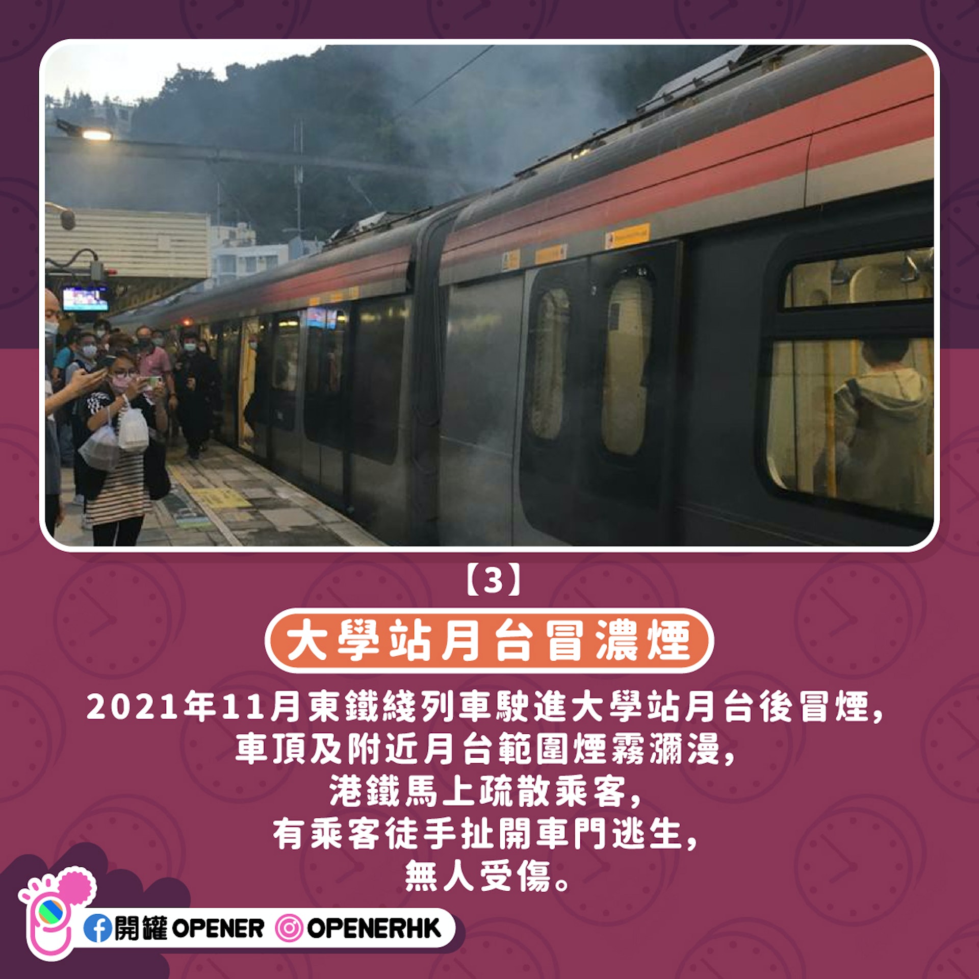 2021年11月東鐵綫列車駛進大學站月台後冒煙,車頂及附近月台範圍煙霧瀰漫,港鐵馬上疏散乘客,有乘客徒手扯開車門逃生,無人受傷。tvb now,tvbnow,bttvb; c, ^- d8 Q9 B; ~& M* \; ?