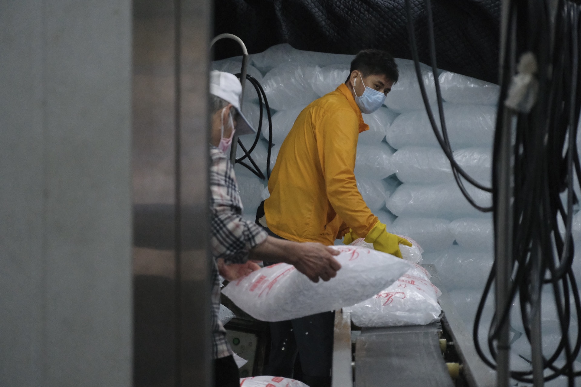他表示,製成冰粒後,會跌入廠內的冰池暫存,之後透過機器包裝成一袋袋的冰包,完成包裝後的冰包,即放上廠內的輸送帶運送至廠外的貨車位置,期間需要有員工確保輸送順暢無阻。陳補充,現時仍需要人手上貨,因可更加善用貨車空間,增加運輸效率。當一批批冰包填滿貨車櫃後,即可按訂單需要送貨。
