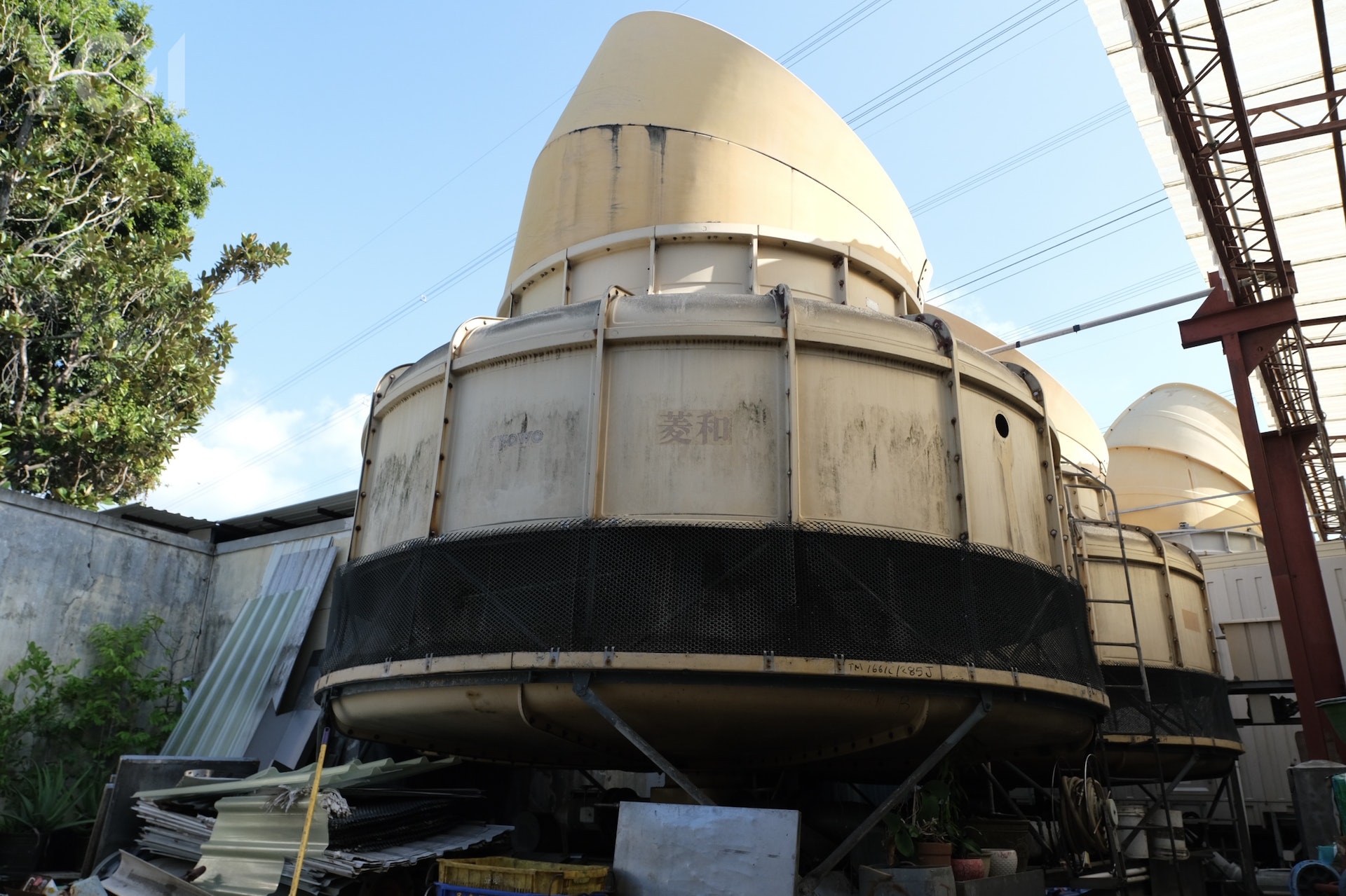 & A/ w9 h* U% B0 fTVBNOW 含有熱門話題,最新最快電視,軟體,遊戲,電影,動漫及日常生活及興趣交流等資訊。製冰廠外有5個目測樓高兩層樓的水塔,用於製冰時散熱用。(盧翊銘攝)
