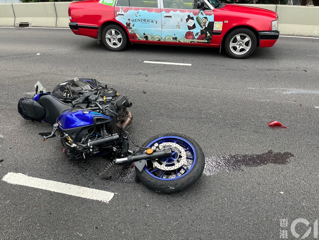 6 R( j, t+ L4 ~1 Xos.tvboxnow.com事發當日,的士司機在現場接受訪問時表示,當時他駕車沿中線而行,快線正塞車,涉事私家車剛剛停下,電單車便撞上。他形容:「電單車好高速撞埋去。」鐵騎士倒地後翻滾到中線,此時他駛至已經收掣不及撞到他。的士司機續說,的士是空載,感覺轆到人,落車向後望見到傷者瞓在路中,有郁動。
