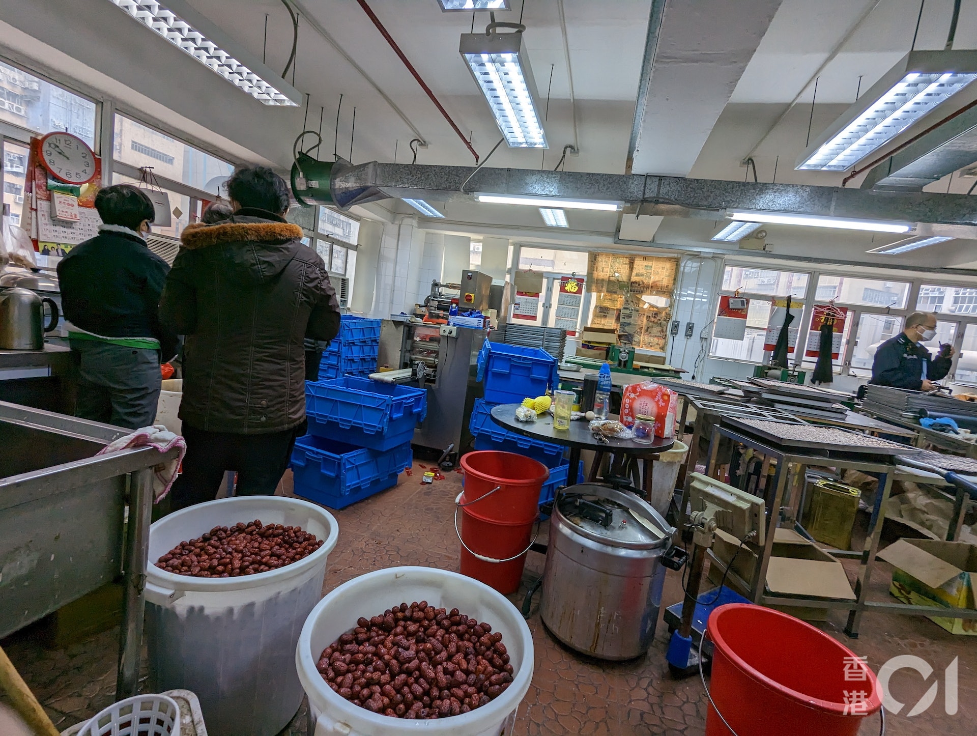4 g+ x% b7 r7 ?2 Q: i3 @) O# tos.tvboxnow.com現場為1個製作中式賀年糖果的廠房,工場內有紅棗、核桃、麥芽糖等材料,相信是製作紅棗核桃糖。(楊嘉朗攝)