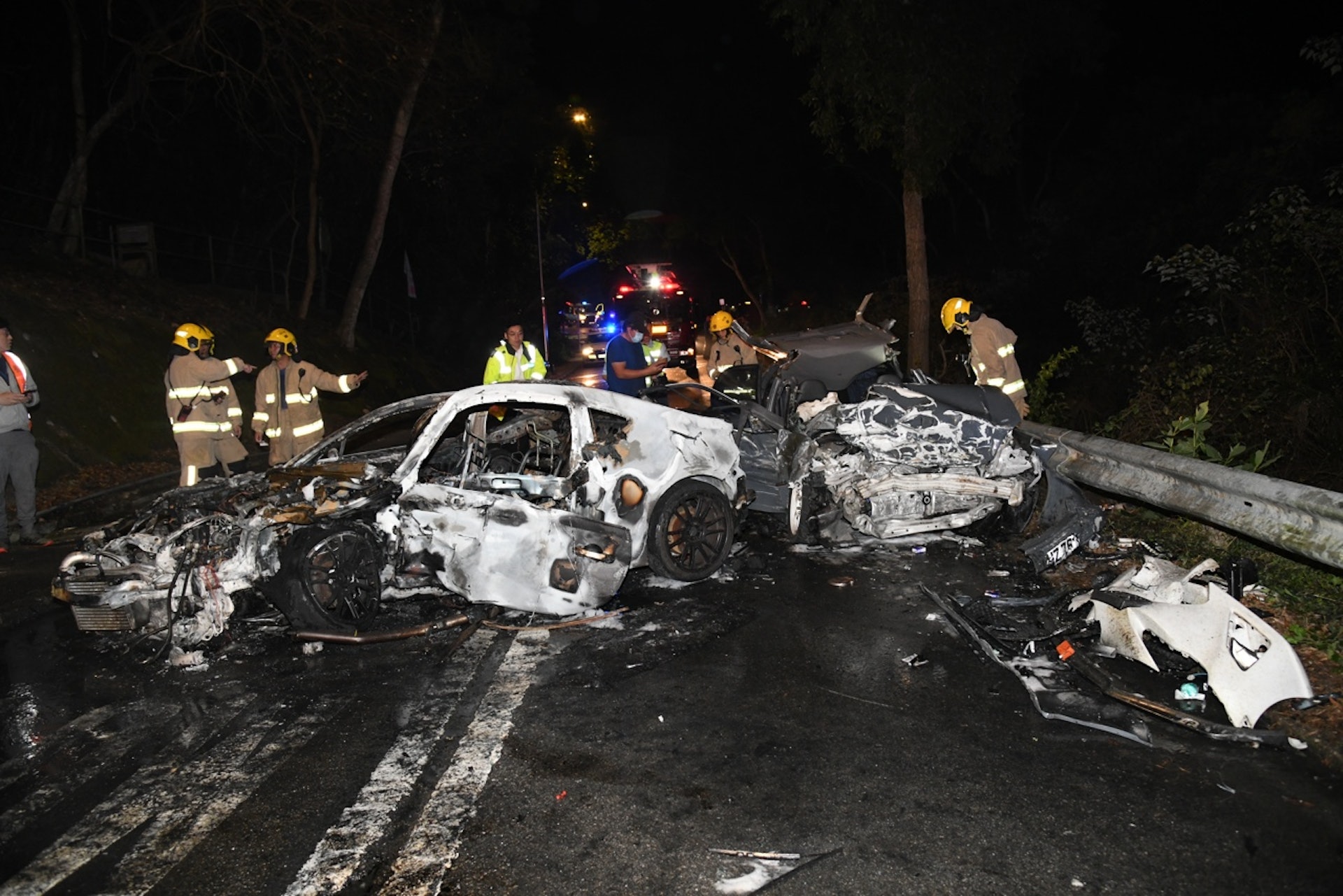 復活節長假期第二日,大埔昨日(8日)深夜11時許發生嚴重車禍,兩輛私家車在新娘潭路近涌尾燒烤場對開相撞,車禍現場影片曝光!根據網上流傳影片,見到其中一車起火,火勢一發不可收拾,全車陷入火海,現場烈焰衝天;另一車有4人受傷,其中兩人被困,由消防救出送院。