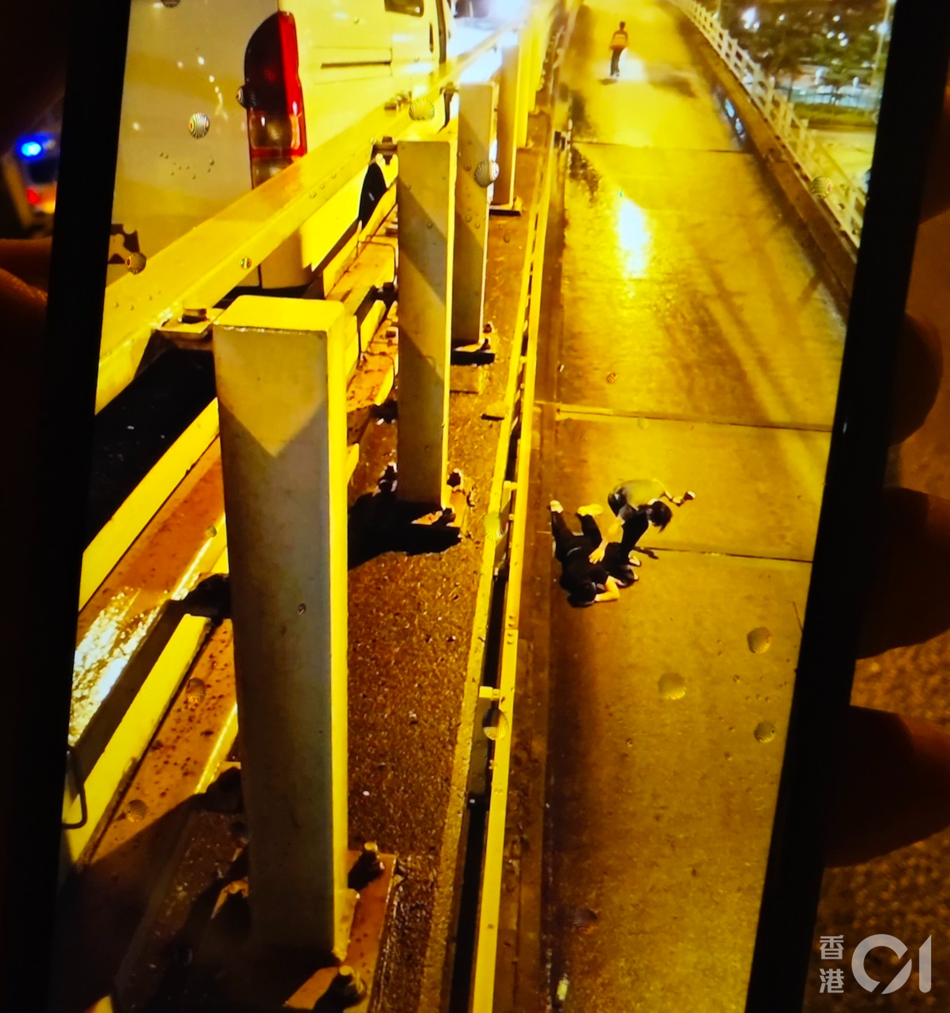 意外後,肇事客貨車男司機被發現倒臥於5米下往旺角方向的落斜橋面。(黃江奇攝)公仔箱論壇( Z' W2 i, }4 l* l/ C E