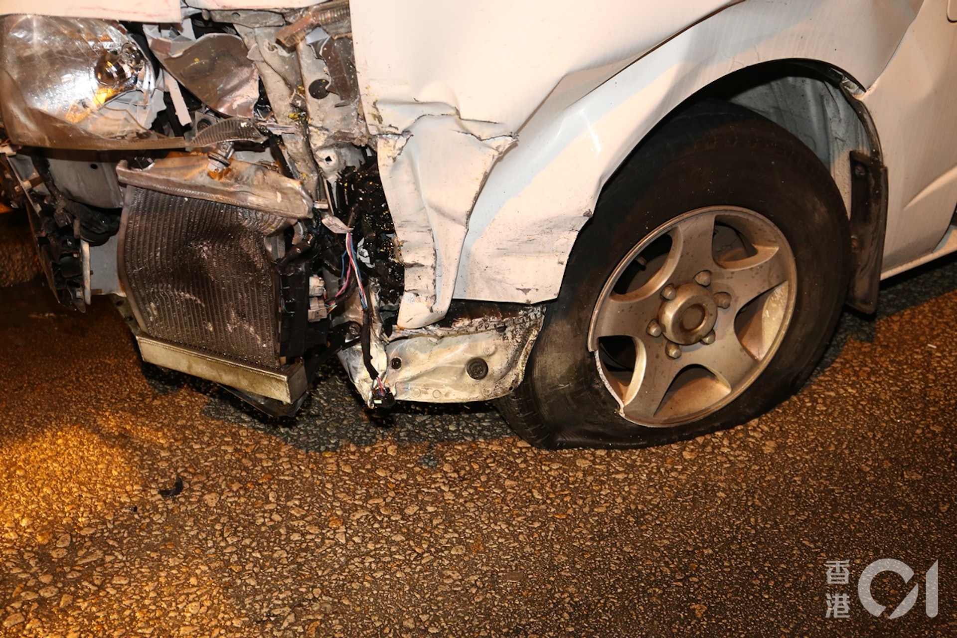 6 V* d- O+ \. e T! Q, Y4 V肇事客貨車越線剷向往旺角方向一邊行車線後撞欄,車頭嚴重損毀。(黃江奇攝)tvb now,tvbnow,bttvb8 E, F- K; f+ ?8 a: q! m7 i