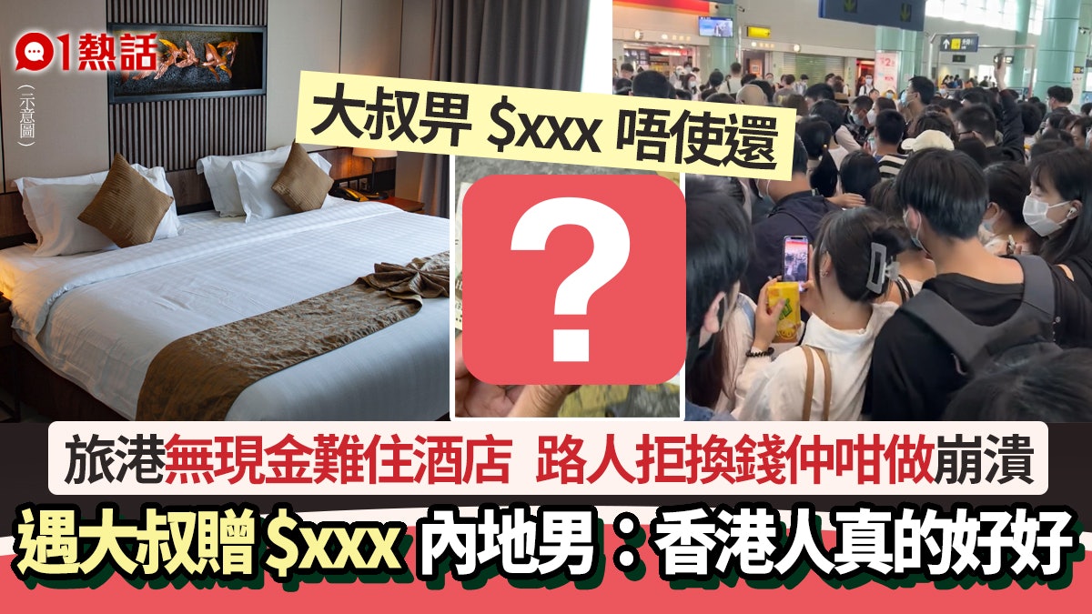 【五一黃金周/香港旅遊/酒店】出外旅遊要準備好適當貨幣是當識吧。有內地男於網上發文表示,他日前第一次去香港,以為可靠手機內的錢「走天下」,沒想到在酒店辦理入住手續時,押金只能用現金或信用卡支付,令他「瞬間崩潰」,於是向多名路人換錢,惟對方「一聽到換現金就趕緊跑」;正當他「打定輸數」思考「在路邊睡」時,卻遇到1名好人「大叔」,知道其苦況後,直接給了他500元港幣且不用償還,令他喜出望外,大讚「香港人真的好好」。os.tvboxnow.com. E- R) H" x* K6 W- p0 {