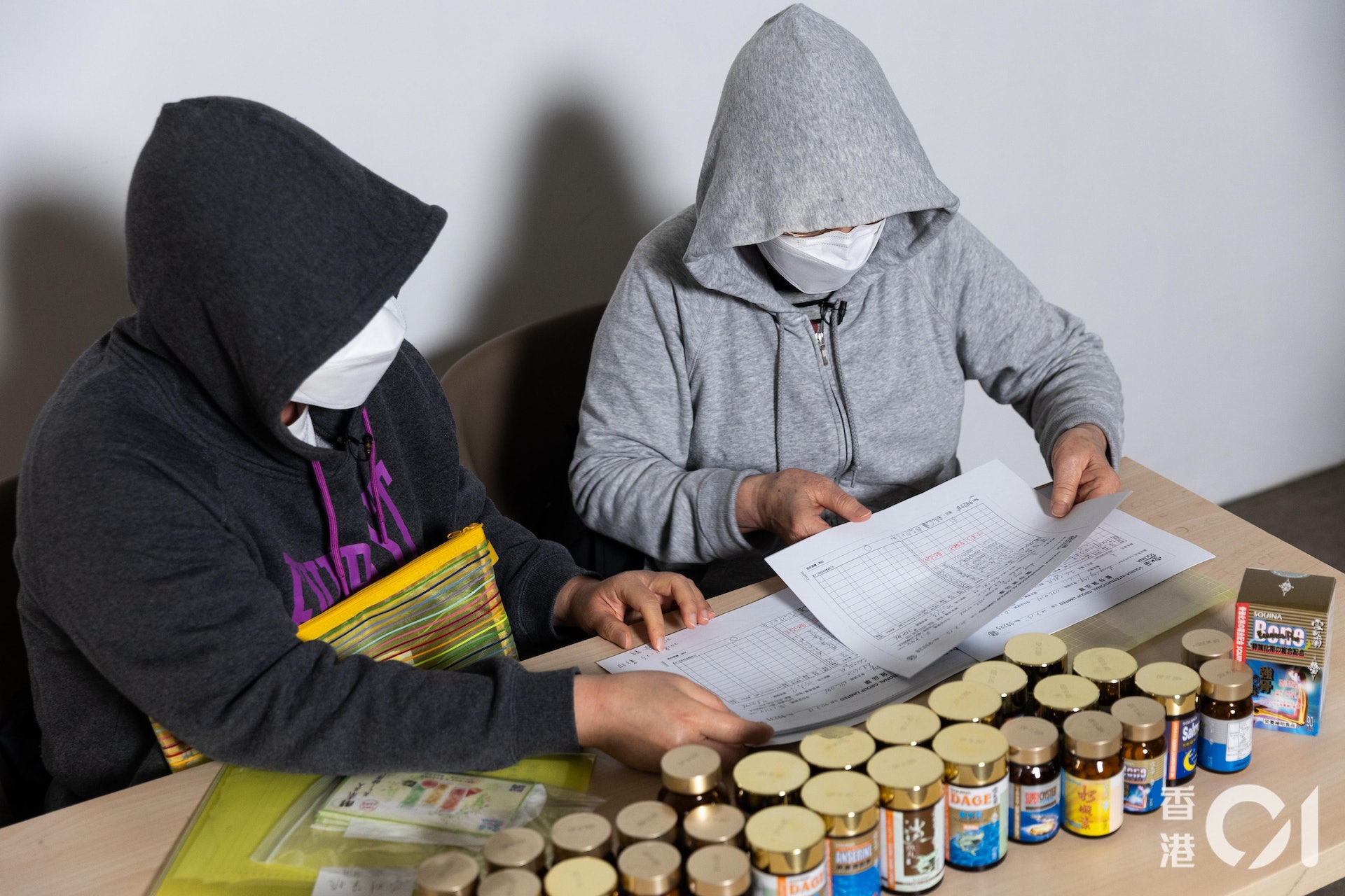 70多歲的陳婆婆(化名)(右)十多年來被推銷買入逾2000樽保健品,至今年初才被女兒(左)發現。(鄭子峰攝) |