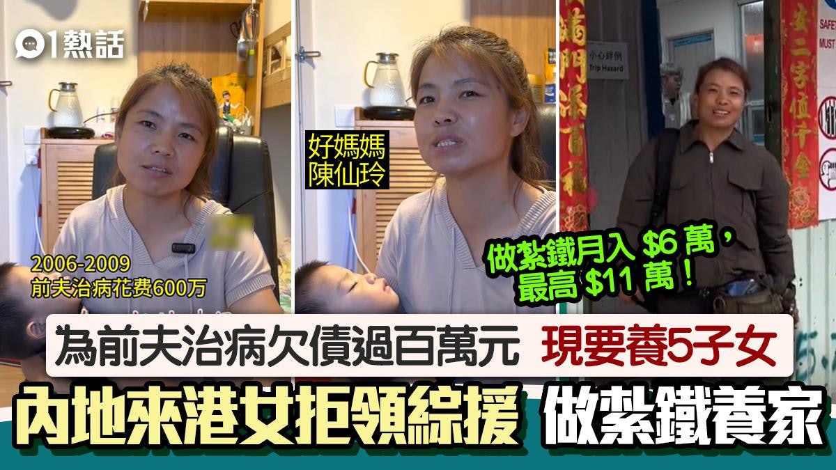 ! F/ _ A1 U; s" _她是真正負責任的女漢子!人生低潮時喪夫後與3名子女被趕出夫家,卻背負約170萬元債務,其後再婚與夫丈合共要養5名子女,這樣的困境一般人都會吃不消,更何況是內地來港婦女?但「好媽媽」陳仙玲沒有自怨自艾,咬緊牙關頂硬上,為了解決一家七口溫飽,以及早日還清巨債,她成功考取紮鐵牌,成為行內第二位紮鐵女工,早晚走兩邊工地,日賺大約2,000元,一般月入約6萬元,最高峰時月入達11萬元,4年間還了大半債務。儘管好媽媽「滿手滿腳都是傷…(但)只要我堅持下去,我孩子可以享受教育,可以享受生活,不用露宿街頭」,樂觀的她對未來充滿希望。