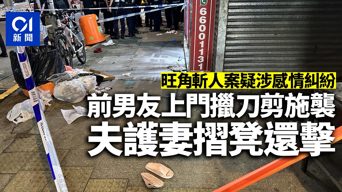 旺角今日(1日)晚上發生傷人案,一對男女被斬傷送院,警員到場拘捕一名男子。消息指,事件疑涉及感情糾紛,傷者為一對夫婦,事發時妻子的前男友闖入兩人單位爭執,其後取刀及剪刀向兩人施襲,雙方糾纏至地面,驚動鄰居及途人報警。