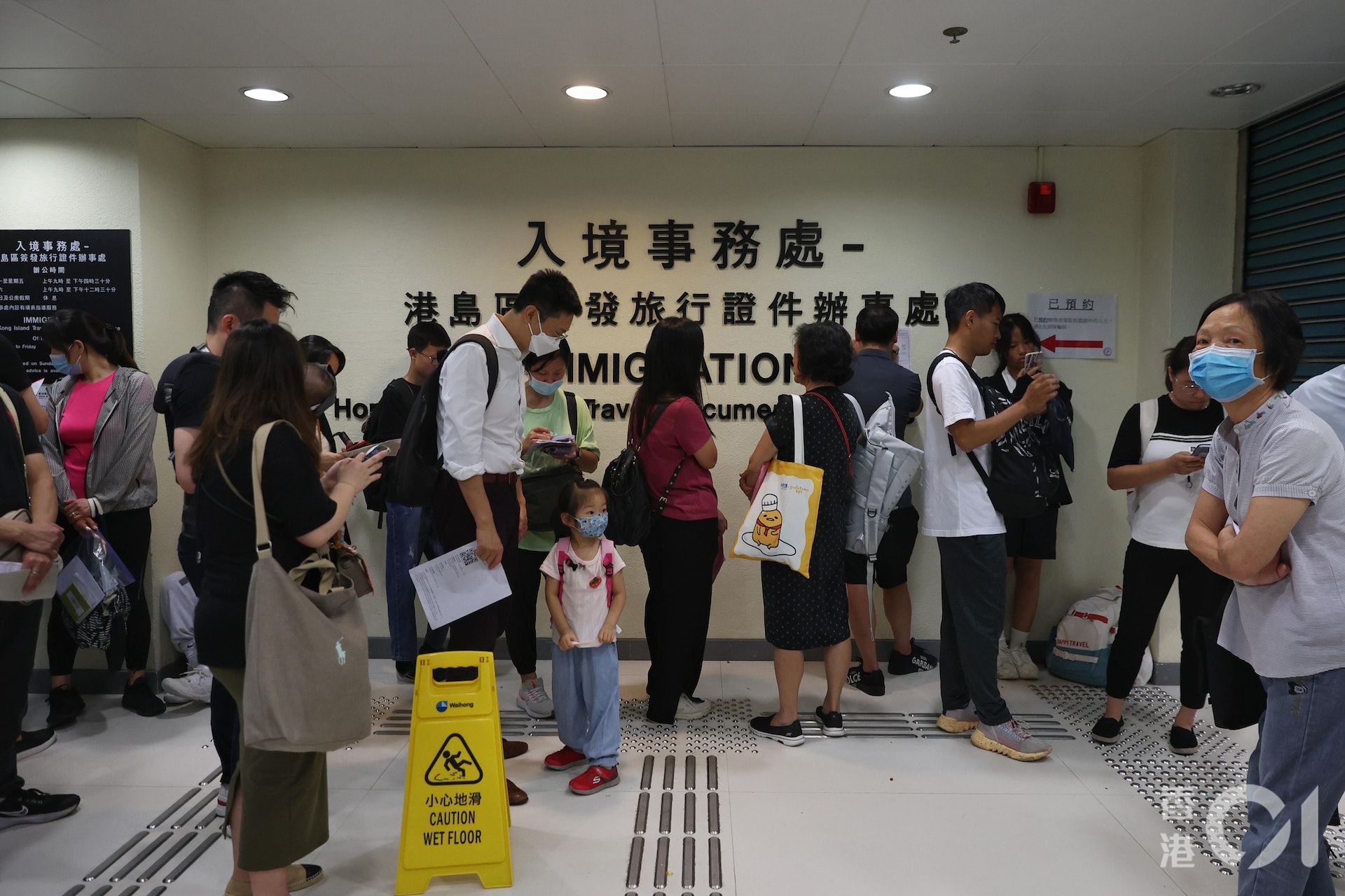 現時辦理「回港證」的網上預約持續爆滿,今早六時半左右,上環海港政府大樓內已有約50多人排隊輪候「即日籌」,不少人為「雙非家長」及其子女。4 b+ I9 Y- n% W5 @& G! T
