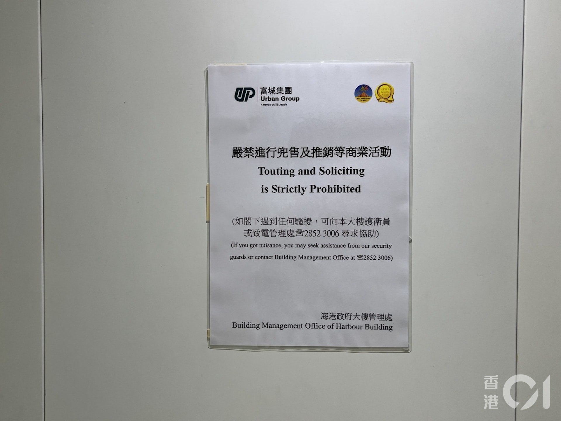 現場設告示牌「嚴禁進行兜售」) R" B+ a2 N, D$ ^$ t