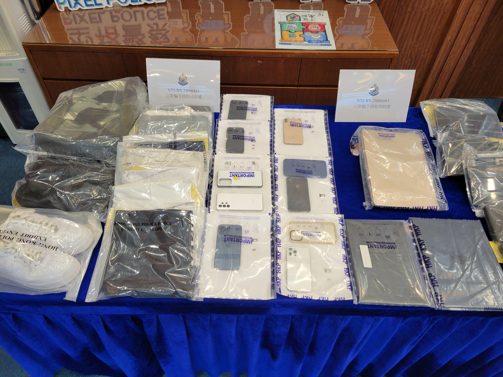 新界南總區刑事部情報組展開調查,鎖定5男女目標人士,他們涉嫌於5月初在全港各區利用盗取的信用卡資料購買電子產品,涉及12宗同類案件,損失金額約30萬。警方今日(16日)採取拘捕行動,拘捕涉案2男3女(16歲至75歲),涉嫌「以欺騙手段取得財產」,他們報稱學生、家庭主婦及無業等。行動中,警方檢取8部手提電話、1部平板電腦及3部手提電腦,以及疑犯犯案時身穿的衣物。5人現正被扣留調查,警方不排除有更多人被捕。