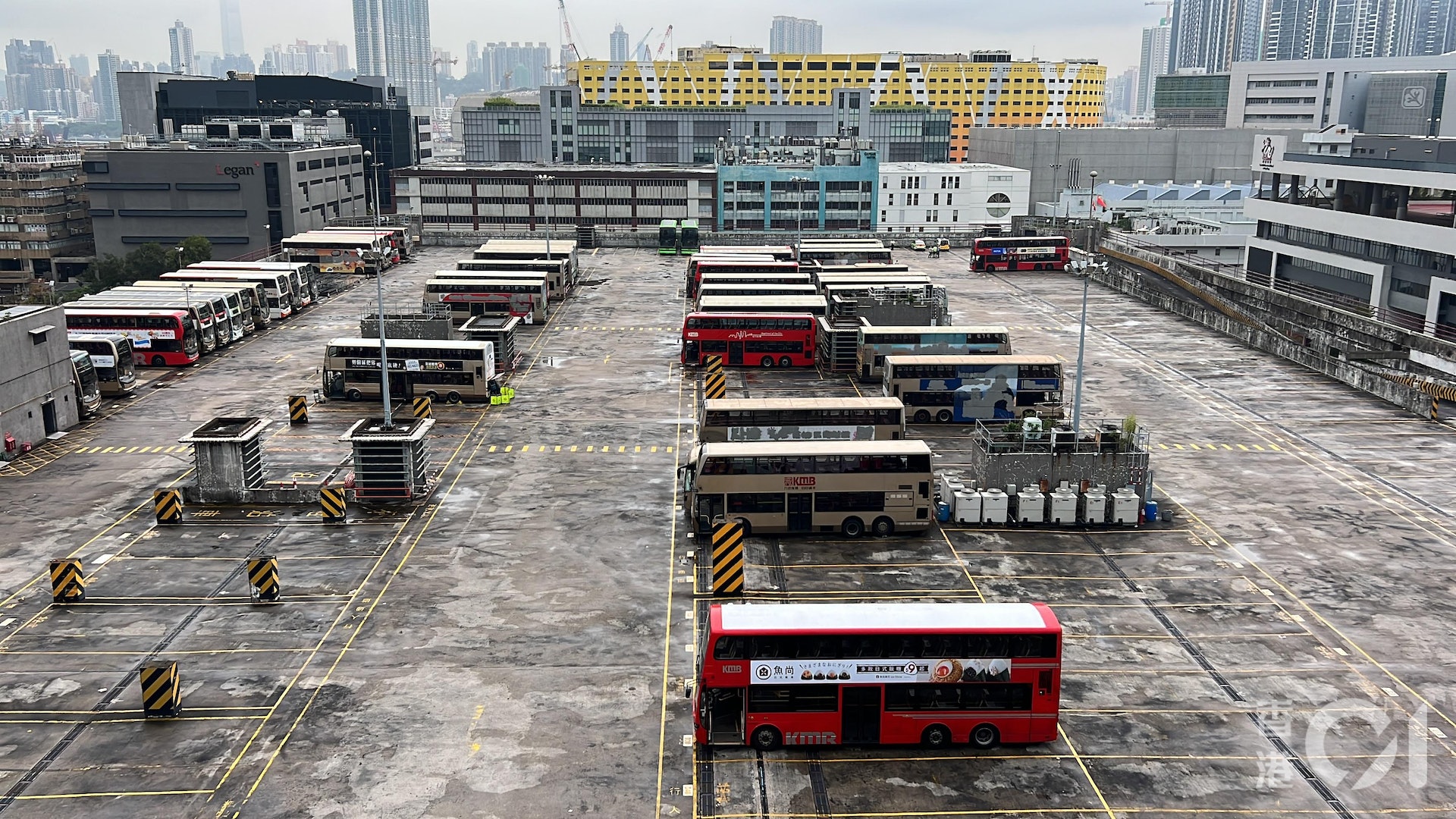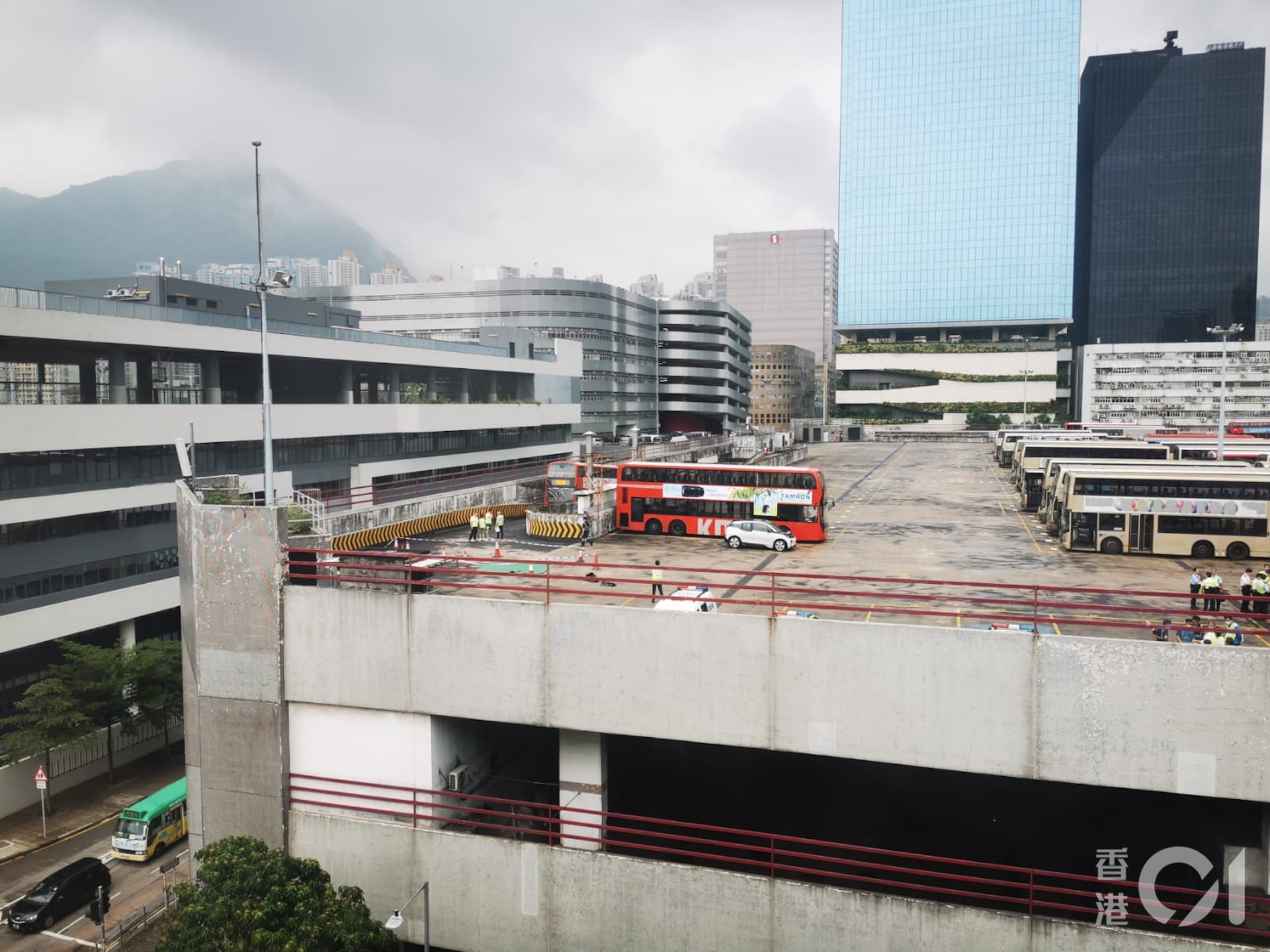 九巴車長被發現倒臥天台行車道上,事發時正值早上取車上班期間。警方正調查事件是否涉及交通意外。(翁鈺輝攝)