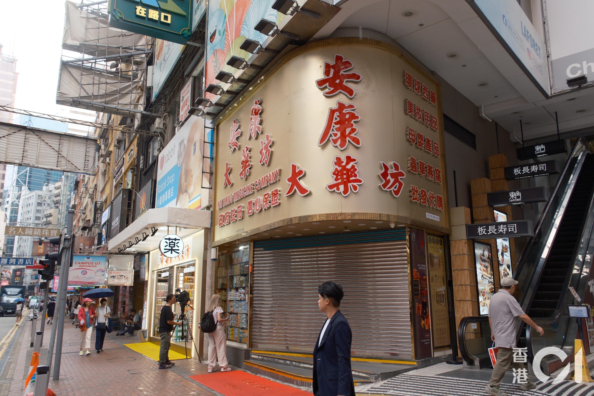 , W/ p6 |2 o6 V「安康大藥坊」遭消委會點名譴責,有記者到訪便拉閘。(盧翊銘攝)