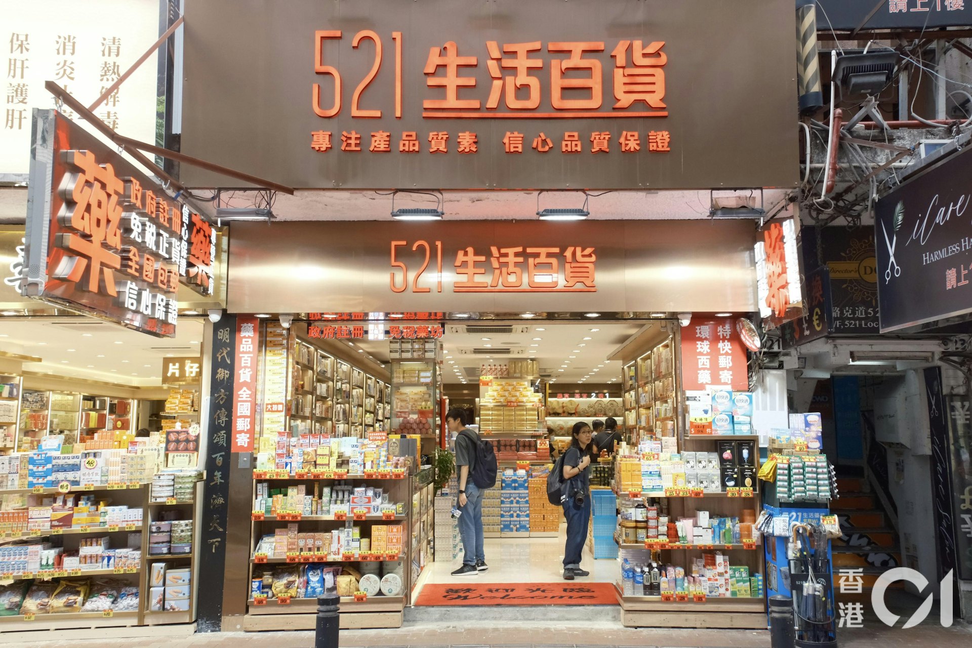 ! }1 w& b% V) Z8 u「521生活百貨」遭消委會點名譴責,店員著記者反問政府何以藥材有分「両」、「錢」,然後循後門離開,掉低店舖不顧。(盧翊銘攝)