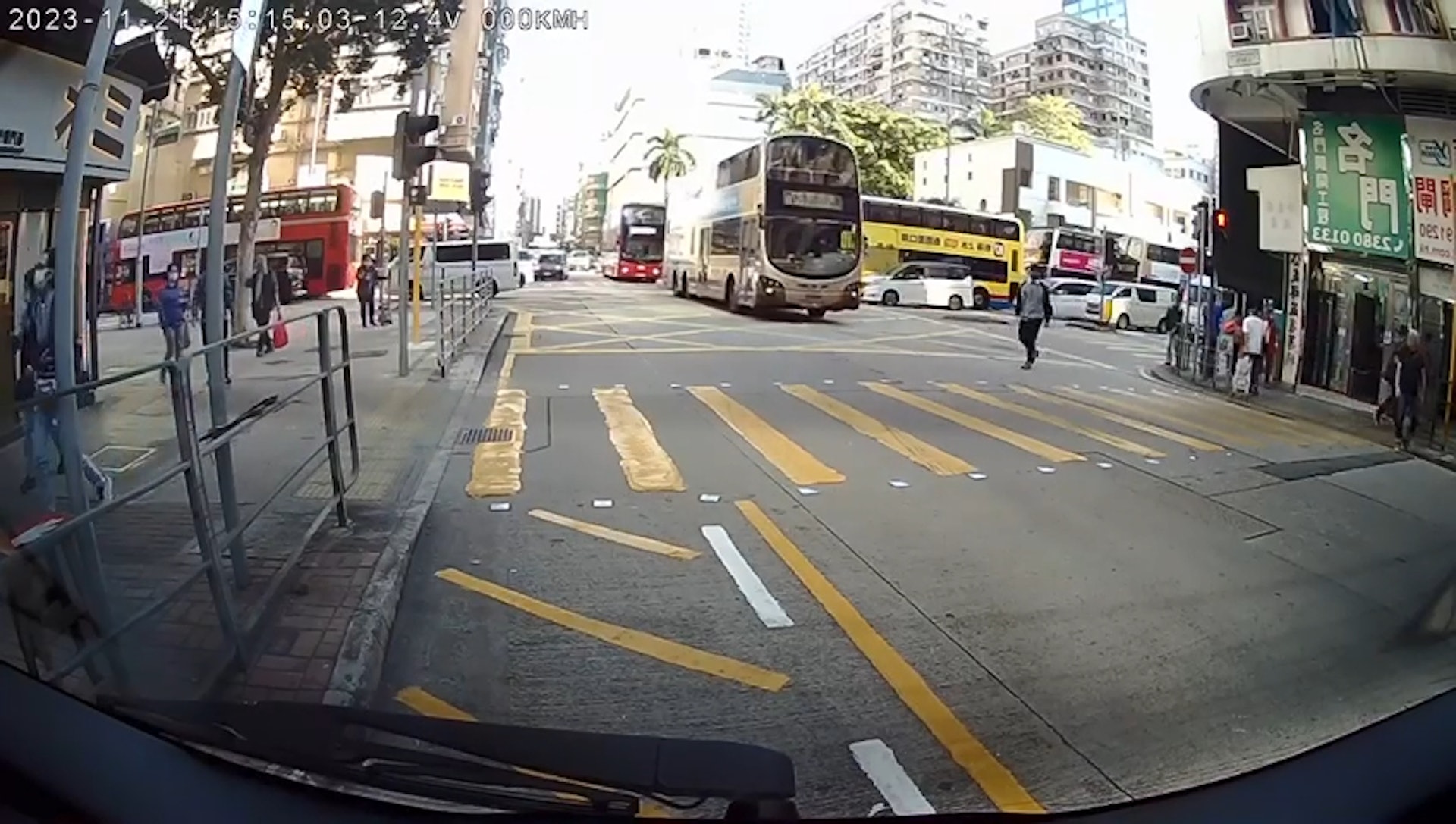 網上流傳的車cam片段顯示,事發在今午3時許,當時旺角道與上海街交界、於旺角道的行人過路線燈號已為紅燈,惟涉事穿灰衣、戴口罩的男子從上海街緩緩步出十字路口並橫過馬路,其時一輛九巴沿旺角道駛至,男子在九巴駛到其身旁時始察覺,馬上加速欲跑開,惟九巴右邊車頭已撞到其臀部,男子頓成「滾地葫蘆」。* R U) F' M1 D) t) j2 g7 {