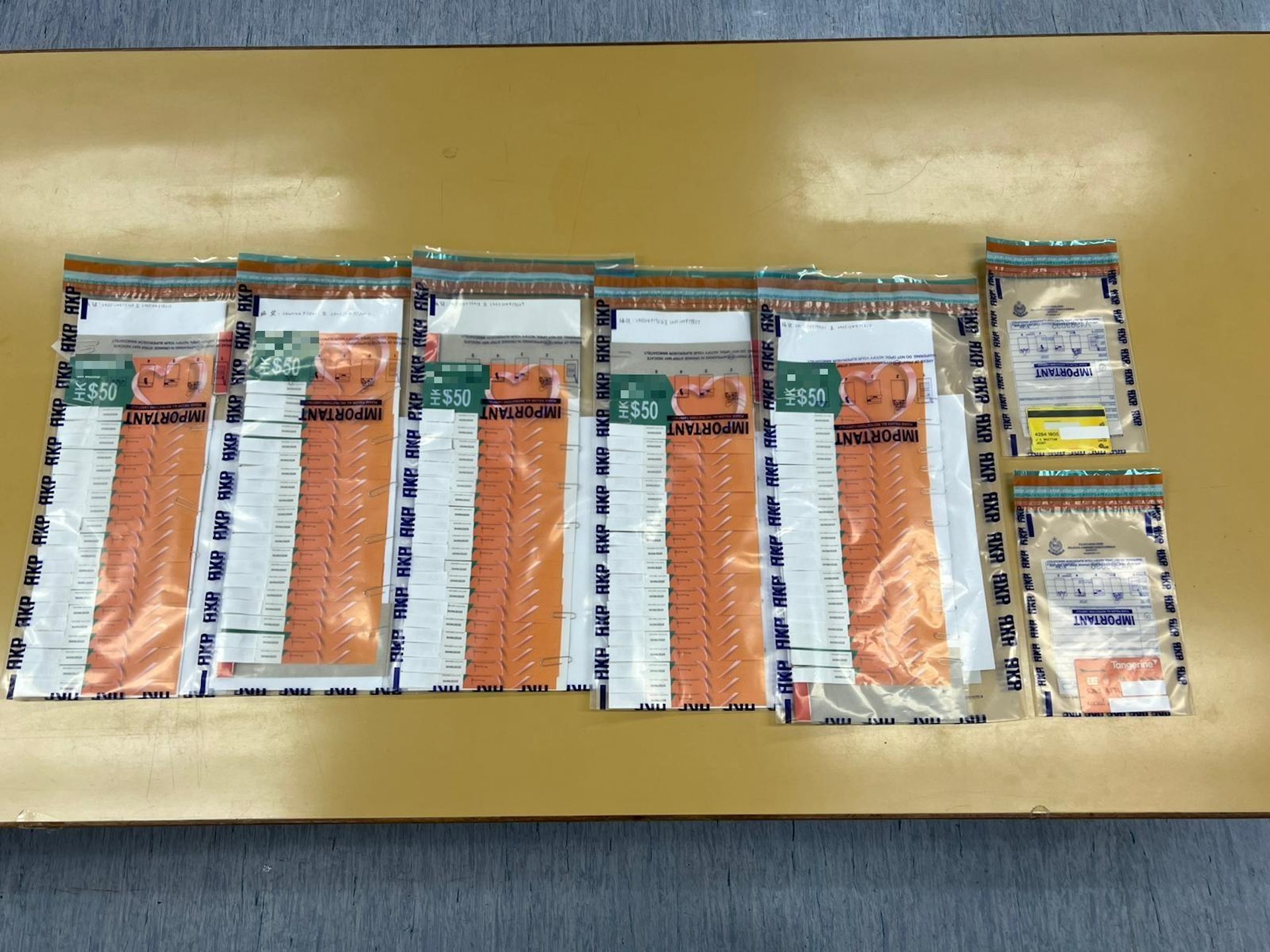 $ O& j8 [( v* V8 d, [, }5 u5 c: B# N7 N公仔箱論壇警方起獲多張現金劵及兩張信用卡。(警方圖片)& g& _! p# d9 l