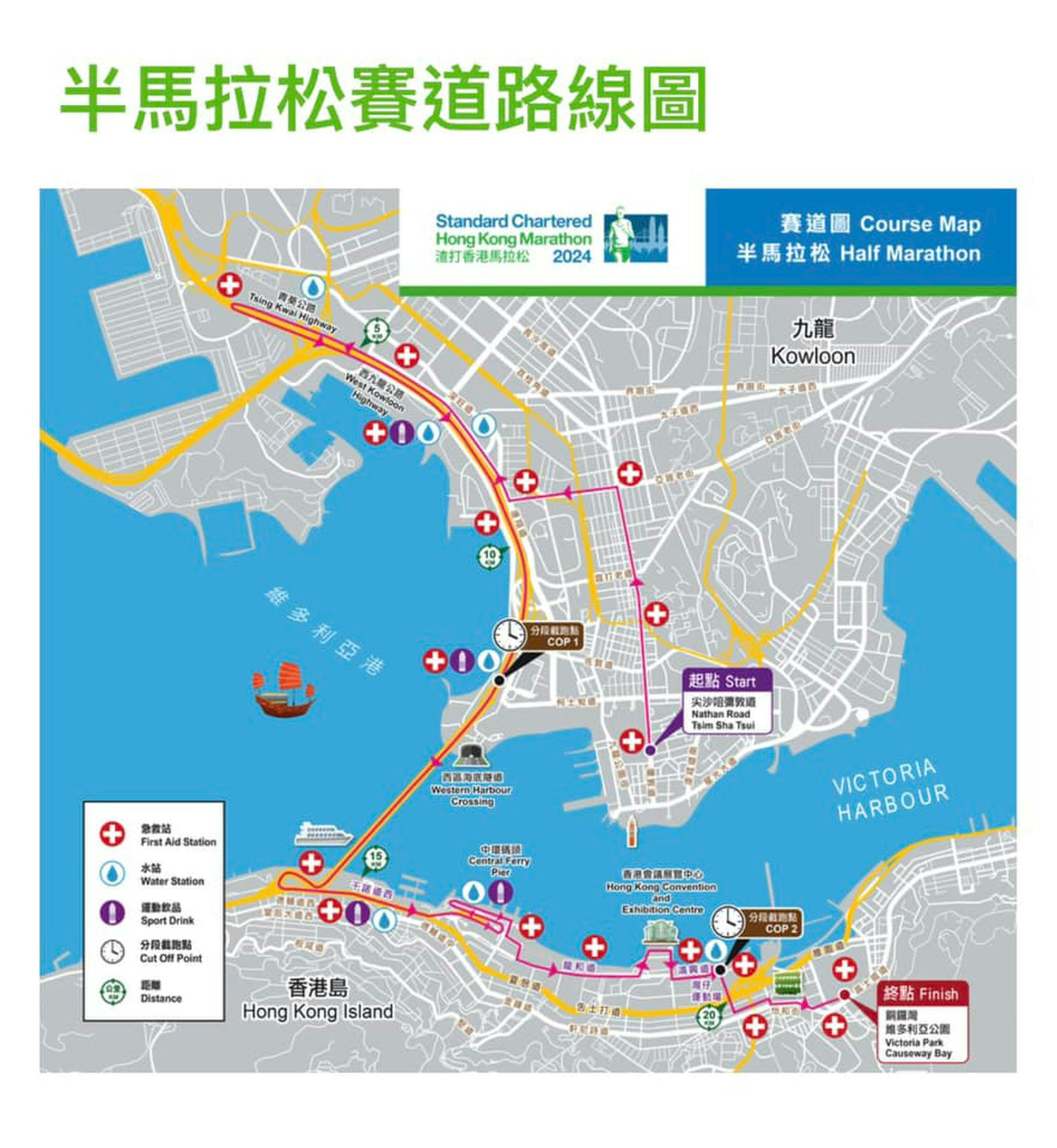 ( E0 v. q: A3 E+ G I+ D5 I半馬拉松賽道路線圖(賽事官網) |