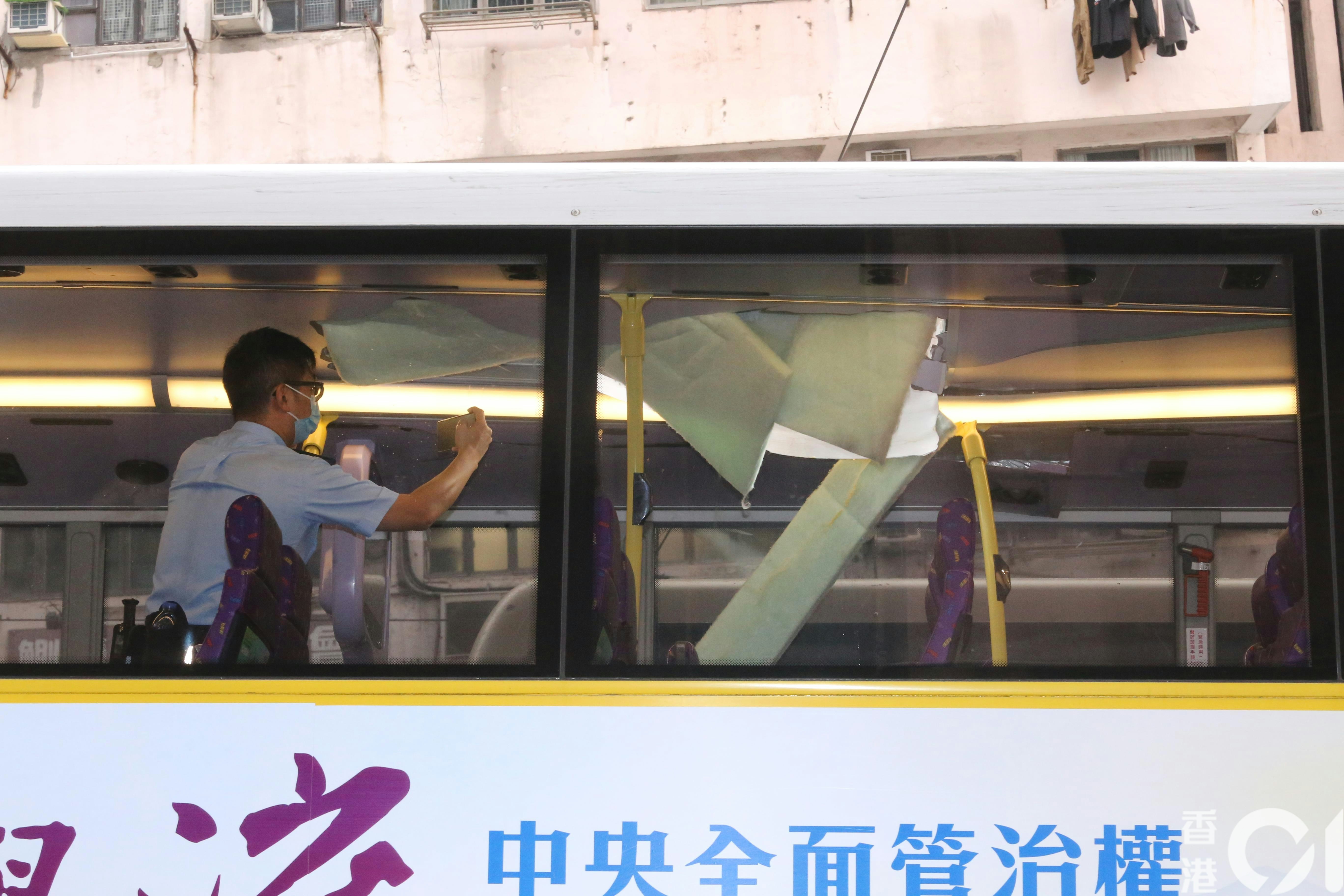 城巴車頂被插穿。! s# n9 e' h. k% y