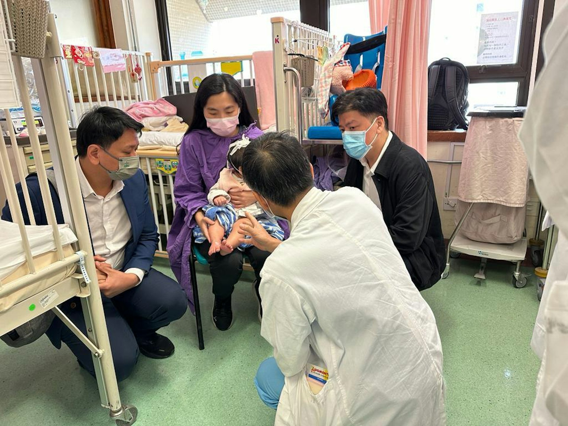 " t7 V+ ?# E3 c6 k& C" [; @! h公仔箱論壇立法會議員鄧家彪與關注組織今到屯門醫院探訪小雪兒。(香港關懷力量提供)公仔箱論壇& t8 B7 X i$ ~. H2 t