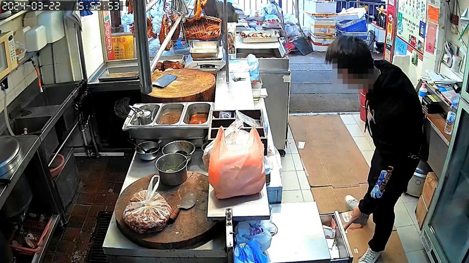 筲箕灣發生竊案。前日(22日)下午,一名男子施然進入金華街21號地下一間燒味舖,偷走櫃枱6,000元現金後逃去。店方事後報警,並將閉路電視片段放上網緝賊,可見一名手持樽裝飲料、身穿黑衫黑褲的男子入店後左右張望,趁無人為意時兩度取走錢箱內的現鈔,離去之時又食髓知味折返,第三度取走錢箱鈔票,最後更大膽拉開抽屜,掠走一大疊現鈔才離去,偷竊全程約45秒。