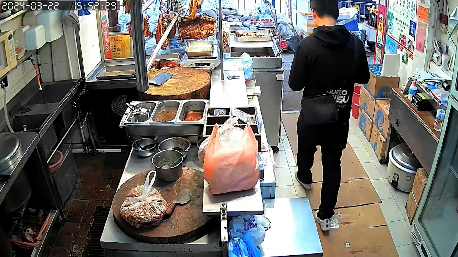 涉案男子經過燒味舖後入內。(網上影片截圖)+ v! t6 n7 r! \7 _& x% r