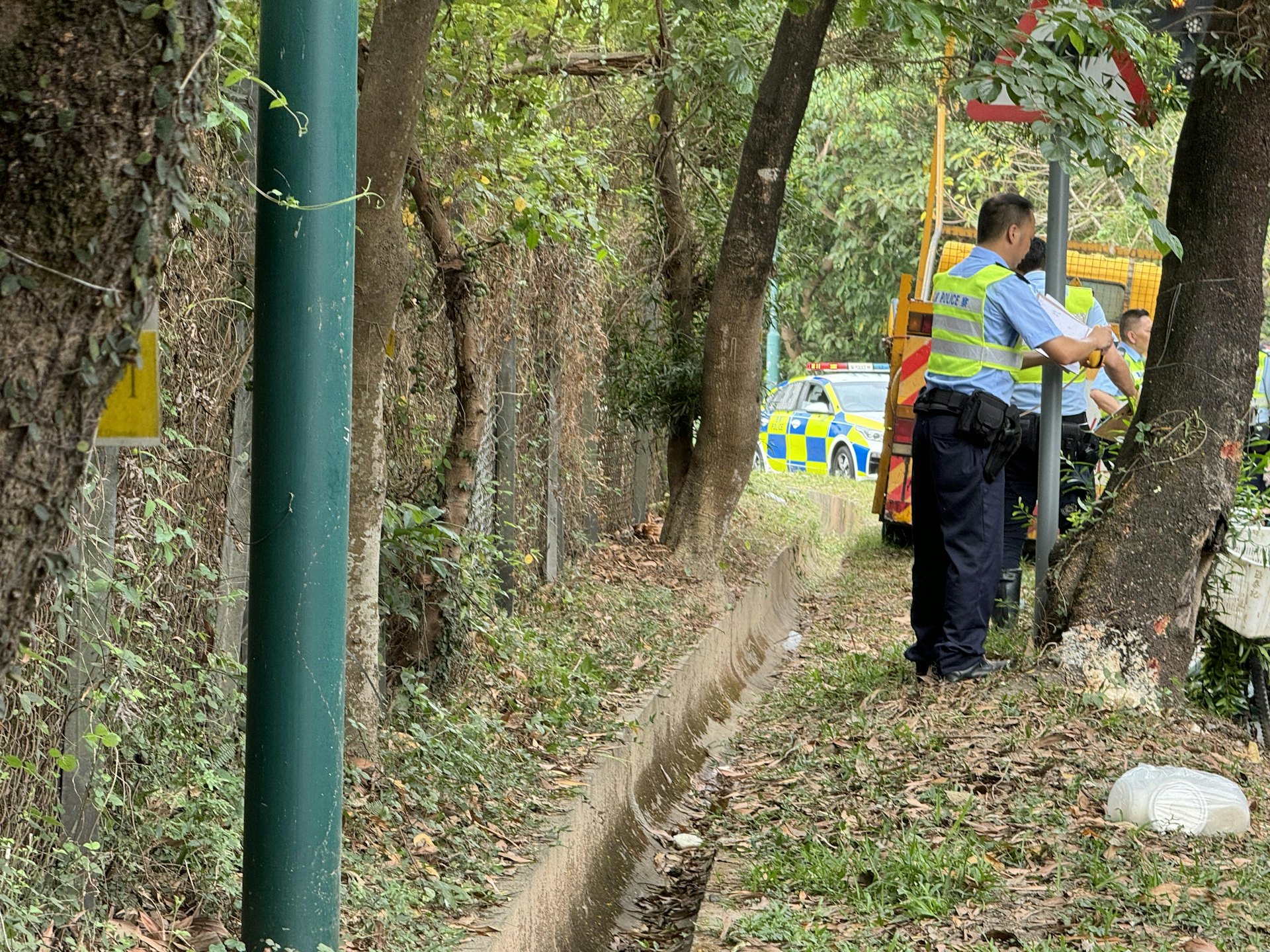 現場有渠務署泵房,警方正翻看閉路電視了解是否拍攝到事發經過。(黃煦緻攝)